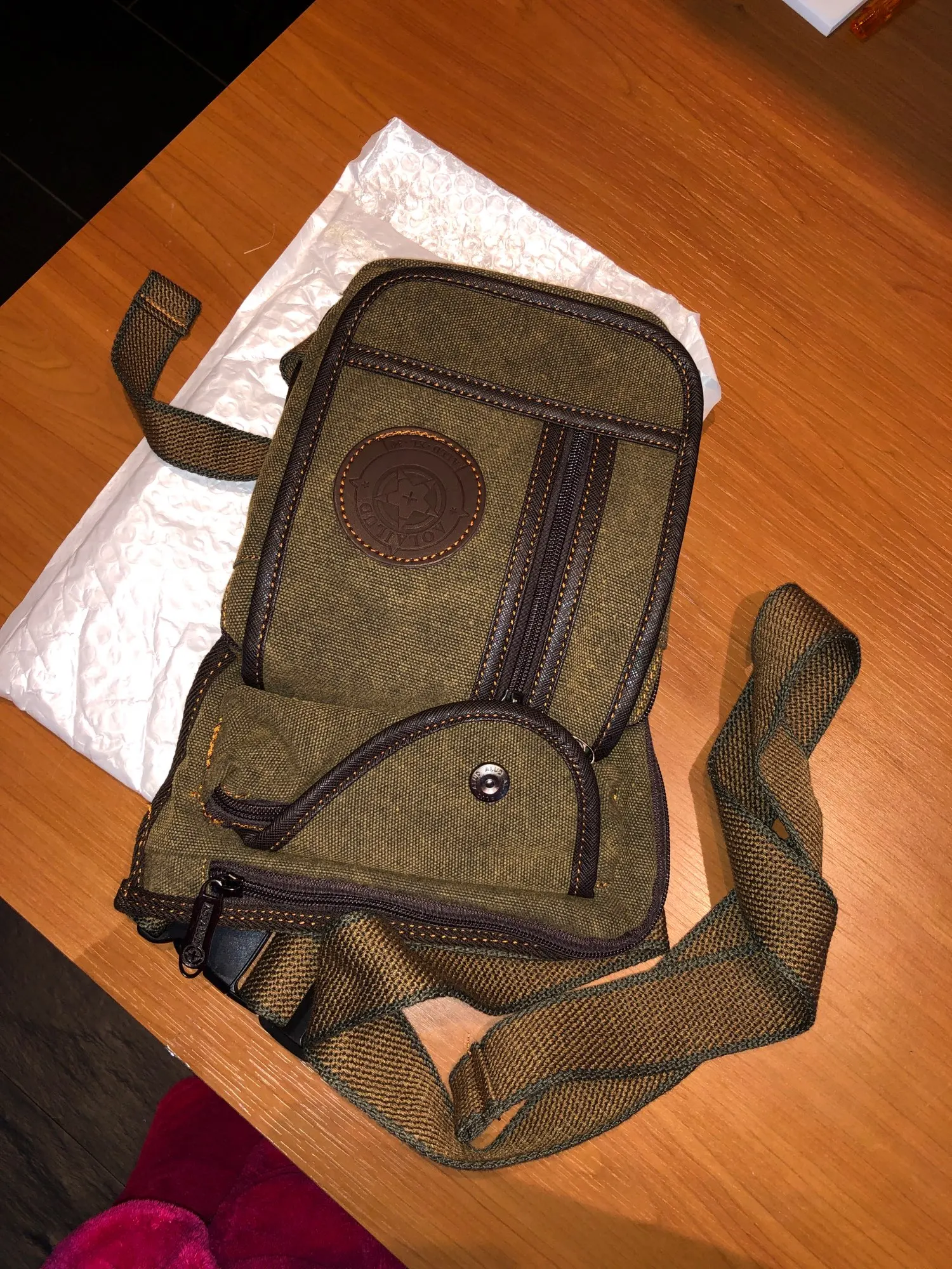 Супер быстрая доставка! Качество действительно хорошее по цене. Я маленькая (5'1 "азиатская девочка) и она подходит как очарование с регулируемыми лямками. Не слишком громоздкий, удобный, подходит для моего телефона и других лакомств просто отлично. Буду покупать снова. :)