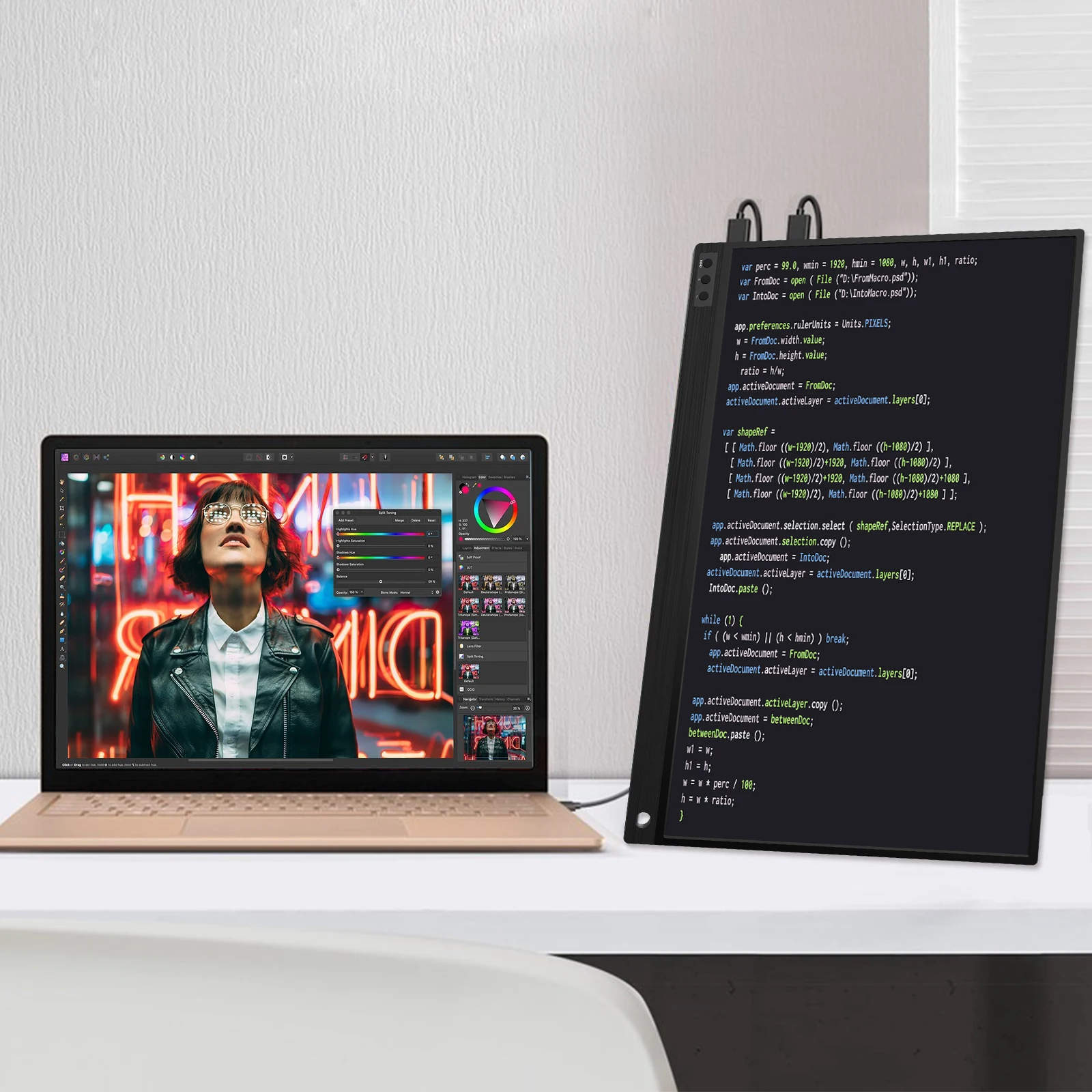 О: все эти устройства подключены к монитору через HDMI-совместимое соединение. Во-первых: питание от монитора с помощью зарядного устройства в комплекте (Подключение порта pd type c); Во-вторых, мини-hdmi-совместимый с hdmi-совместимым кабелем для подключения устройства и монитора.