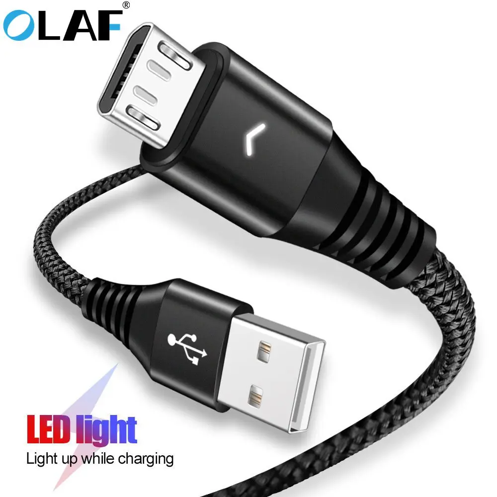 Кабель Micro USB Olaf, 2,4 А, светодиодный USB-кабель для быстрой з...