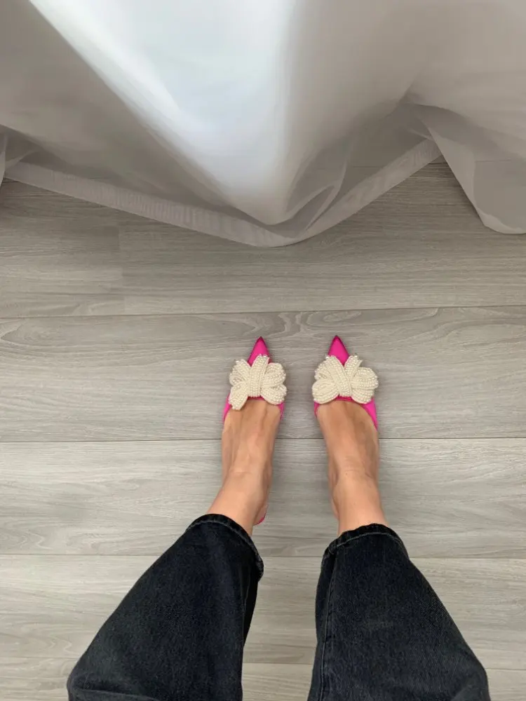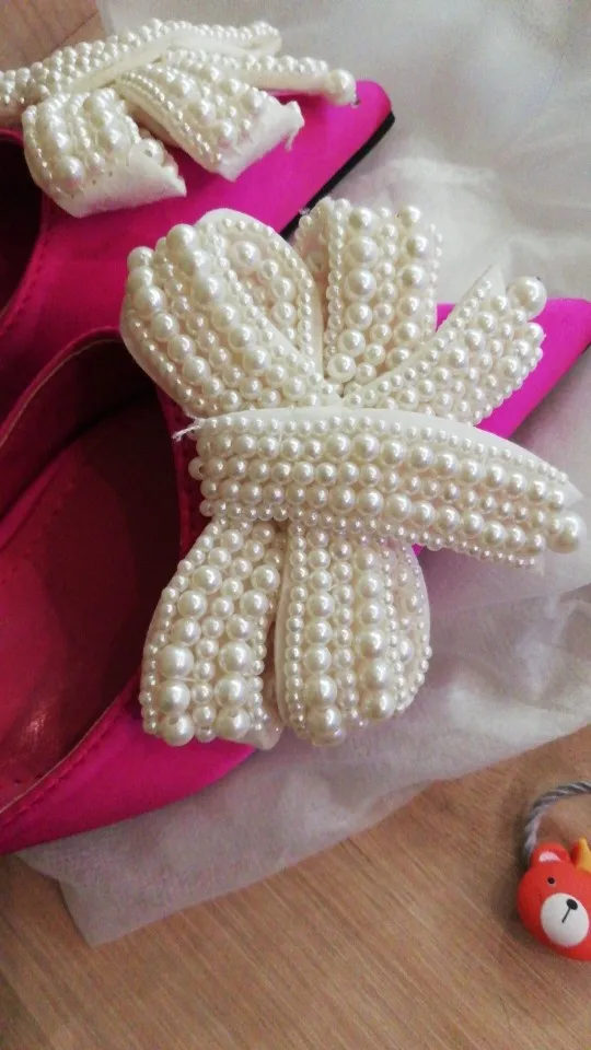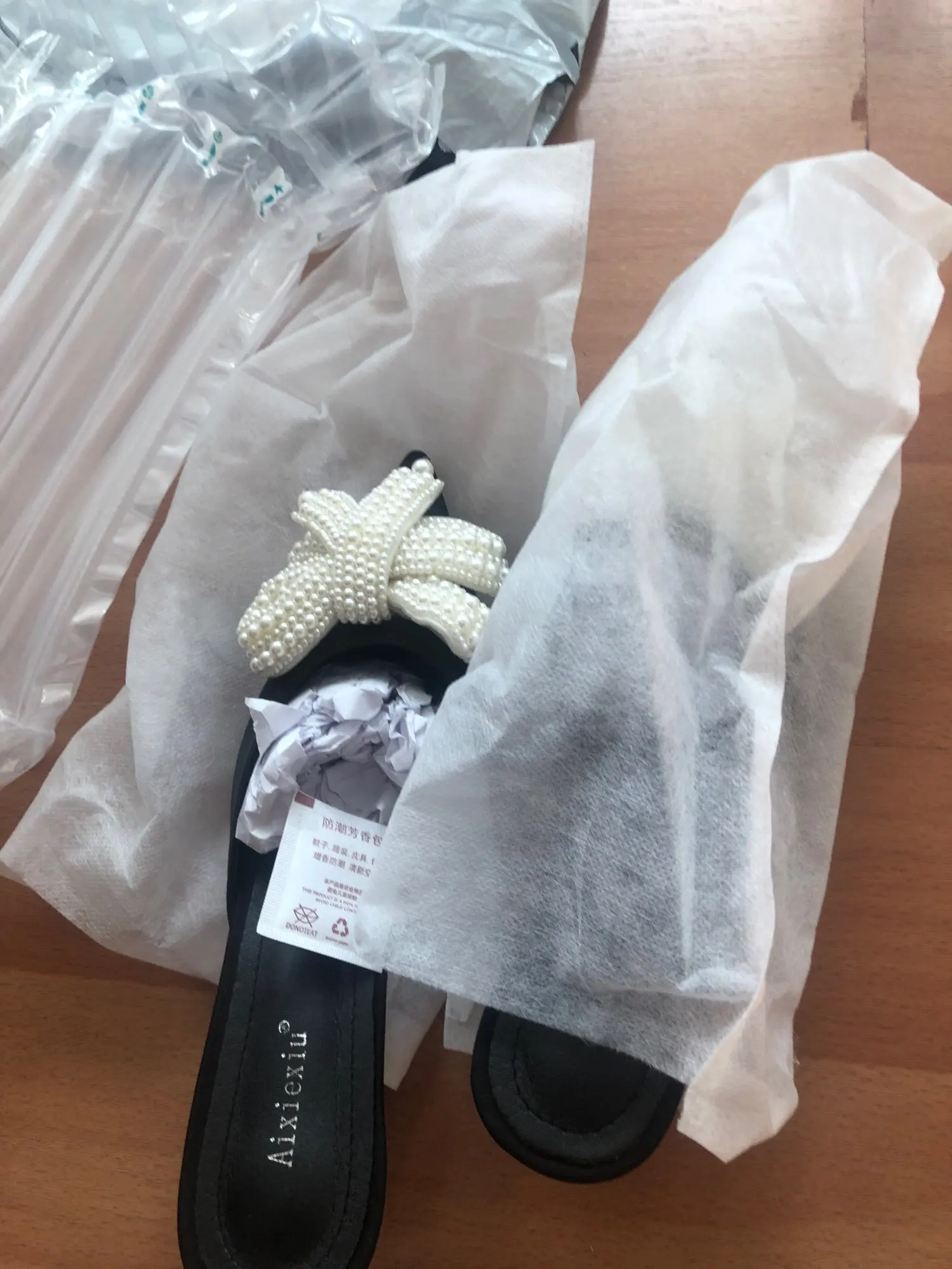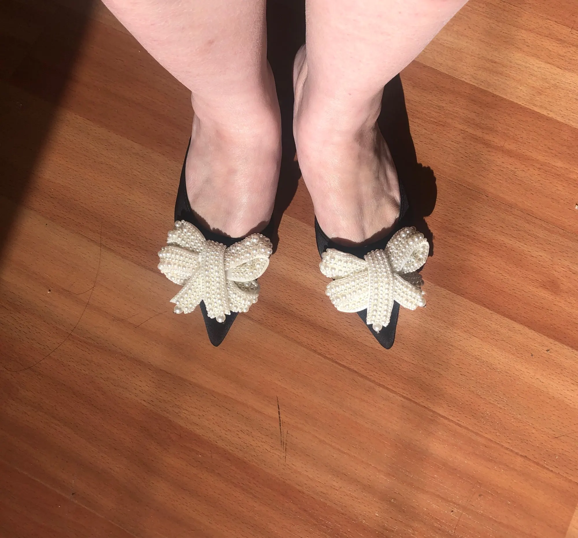 Fabulous mules! The pearl bows are big and pretty , they make the shoes look so lovely and elegant, exactly as pictured on the seller’s site. They are comfortable and well made with good quality material. I am already thinking of buying the other color. The thoughtful Seller packed it very well for protection during delivery, it was packed inside hard bubbles pack and delivered fast within 10 days! Five stars to the Seller and the product.