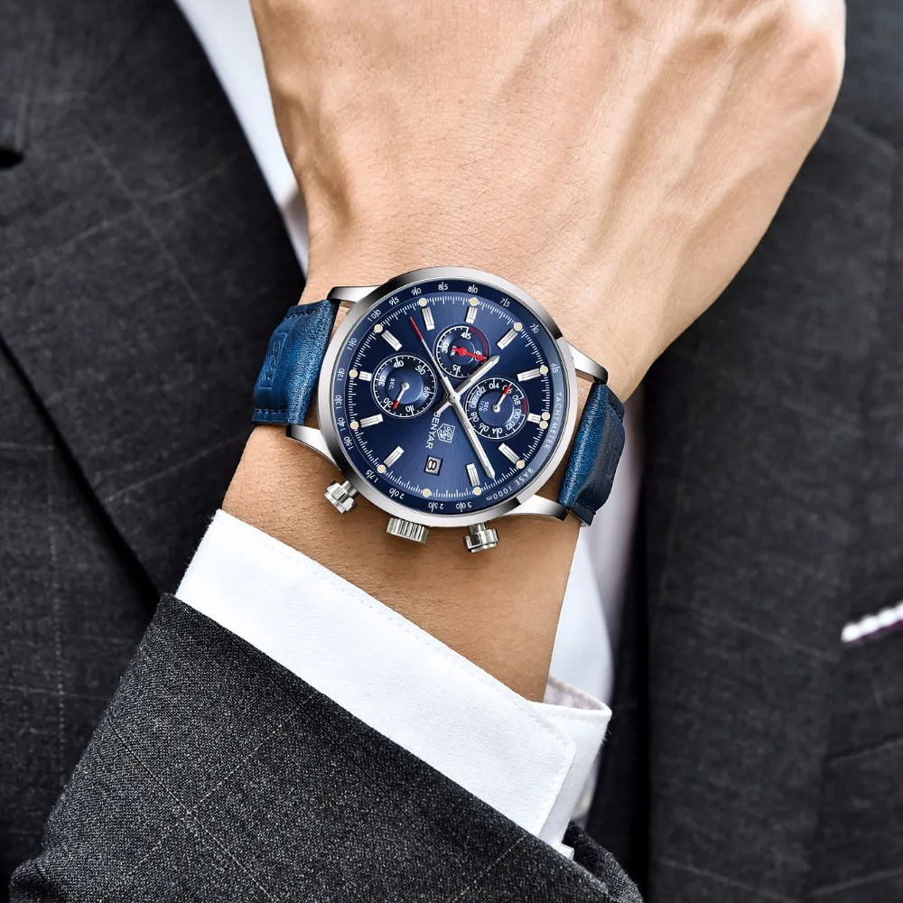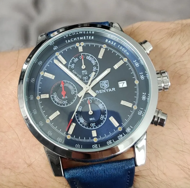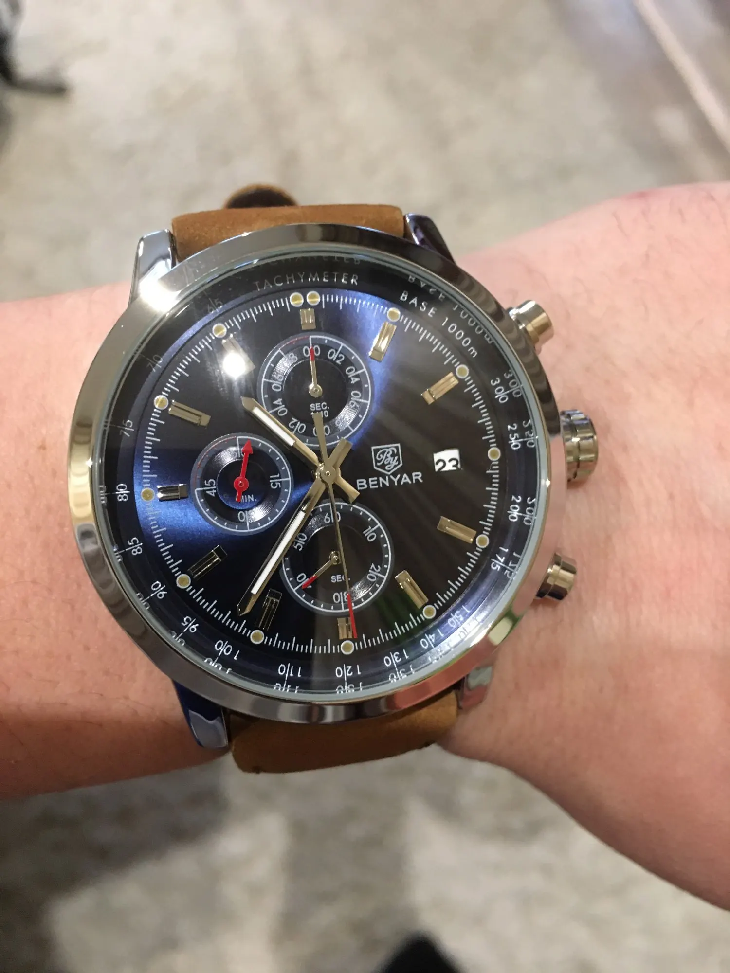 Мужские часы BENYAR, кварцевые часы с хронографом, модные спортивные автоматические часы с датой, кожаные мужские часы