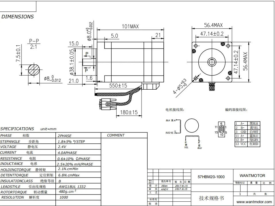 Все корабли! 3-осевой 4-проводной шаговый двигатель Wantai Nema23 с замкнутым контуром, 57HBM20-1000 4A 210N-cm(300oz-in), Серводвигатель 8a, пиковый + 350 Вт 36