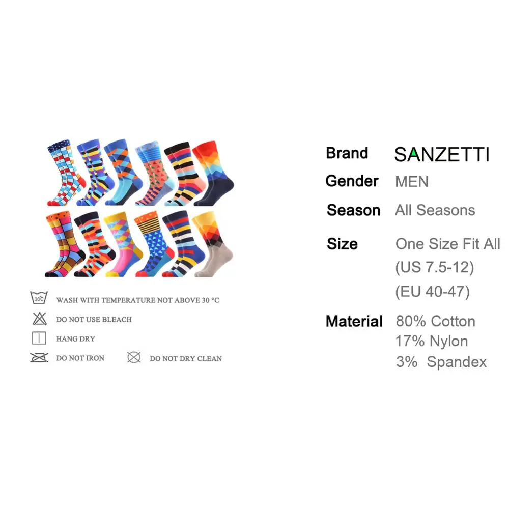 Носки SANZETTI мужские из чесаного хлопка, повседневные цветные классические, в клетку, в полоску, 12 партЛот, 2020