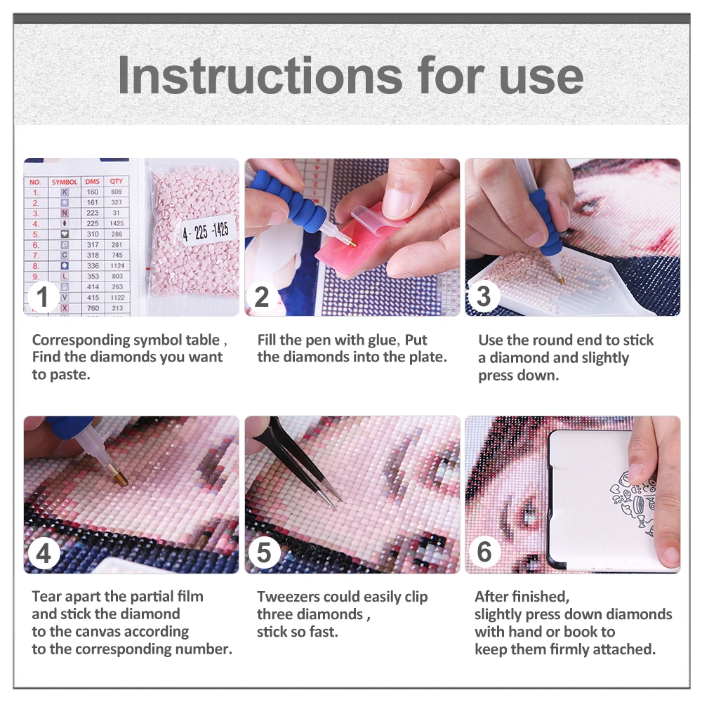 6. После завершения слегка прижмите бриллианты рукой или книгой, чтобы крепко прикрепить их.