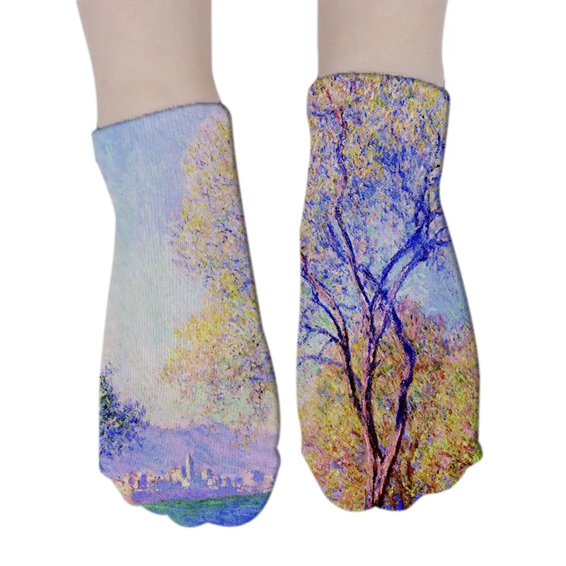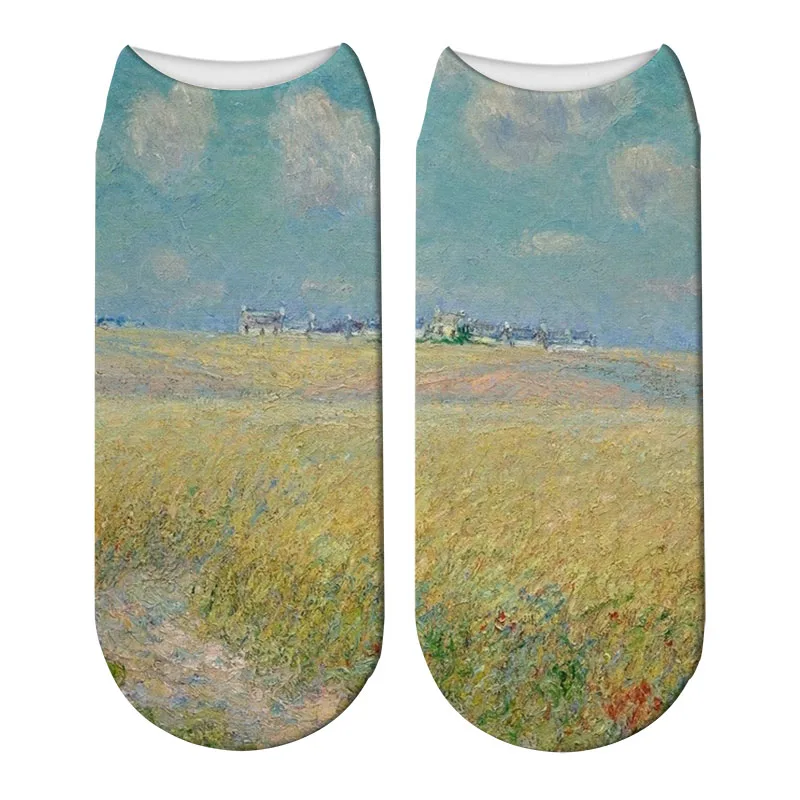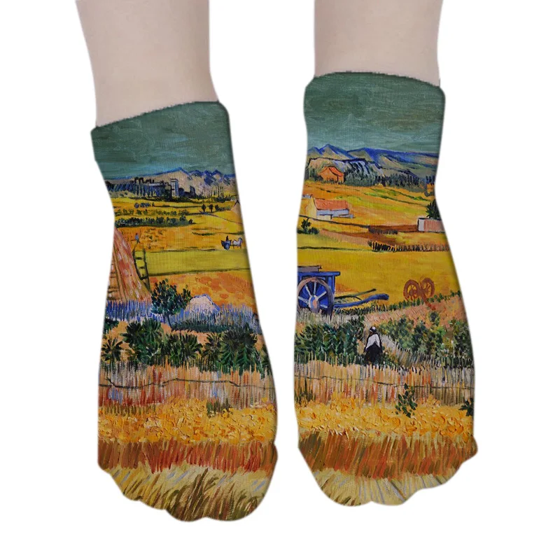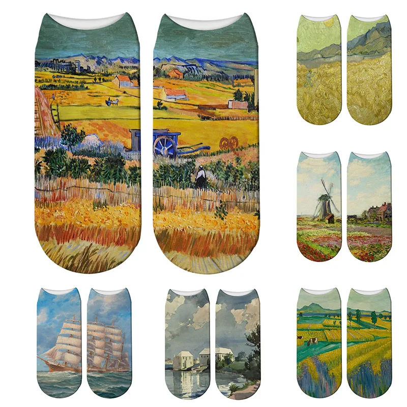 Носки женские короткие с 3D-принтом картины маслом, смешные Смешные с надписью Ван Гога в стиле унисекс, подарок для девушек, осень-лето