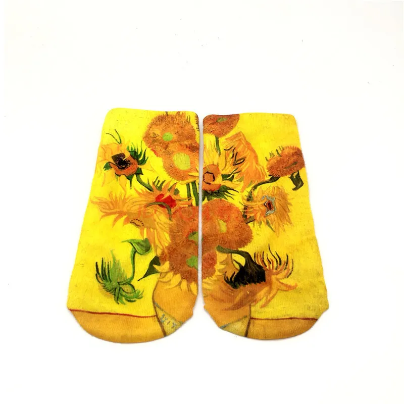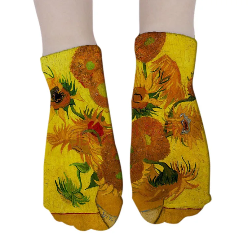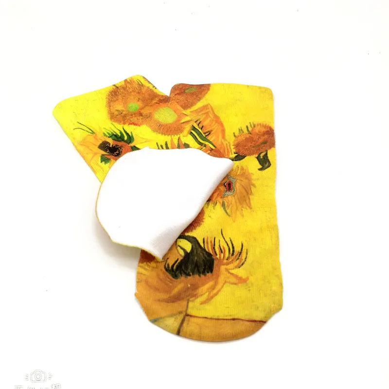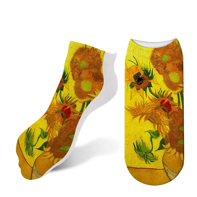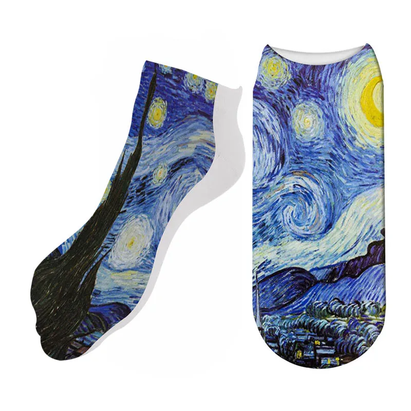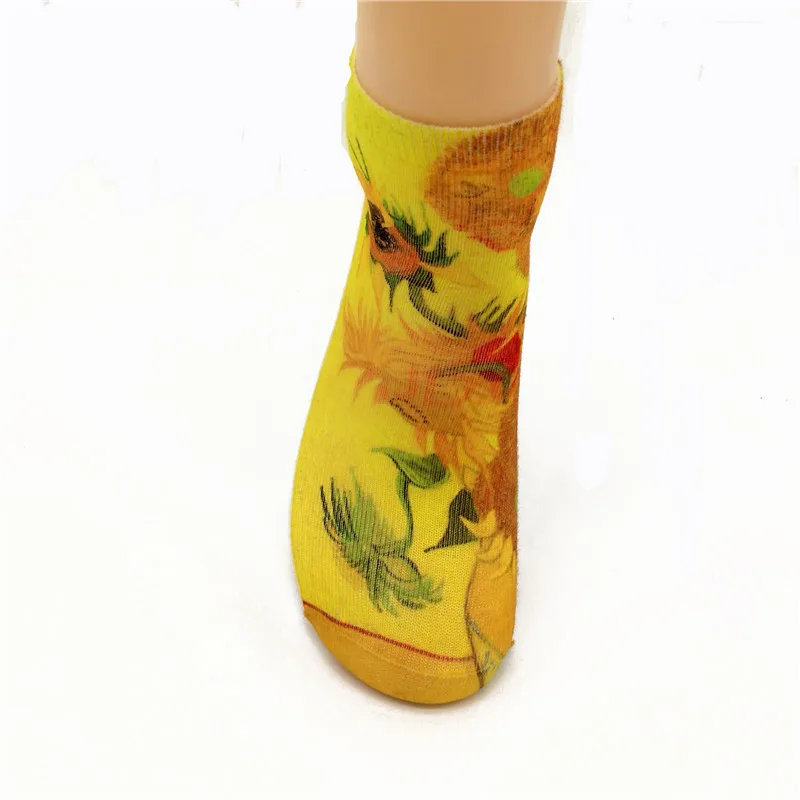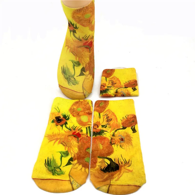 Носки с 3D рисунком Ван Гога, известная картина маслом, звездная ночь, Подсолнух, кафе, летнее хлопковое дышащее искусство
