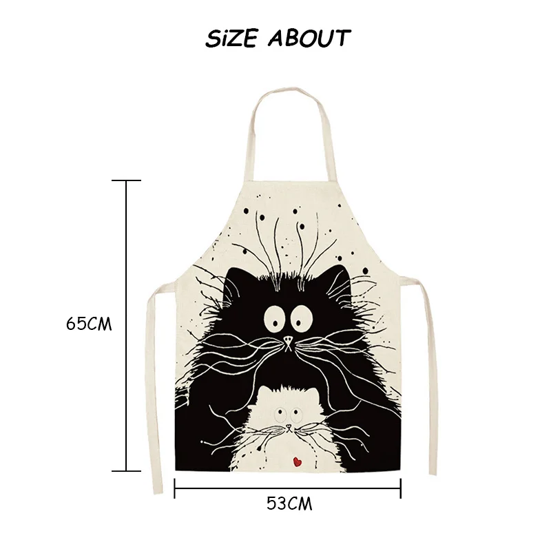 Черные фартуки для выпечки с принтом кошек 53*65 см, хлопковое Белье Без Рукавов Для Женщин, мужские домашние Кухонные фартуки 46307