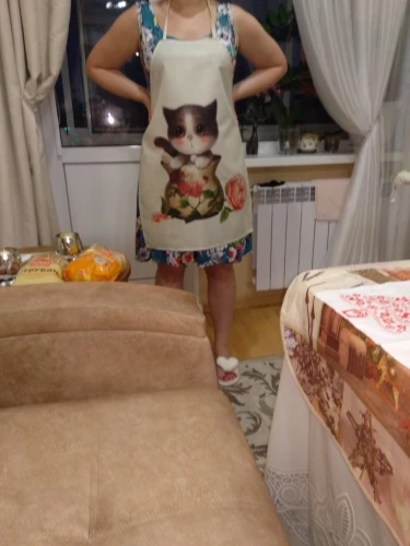 Фартук очень понравился. Даже не ожидала, что такое хорошее качество. И по размеру хорошо. Мне на рост 170 см. очень хорошо. Ничего не надо удлинять, а то обычно лямка верхняя короткая. Брала на распродаже за 146 руб. Принт хорошо пропечатан. Ткань похожа на мешковину прорезиненную. Продавец отправил быстро. Пришло в срок. Продавцу спасибо! Рекомендую!