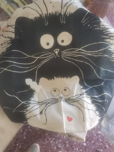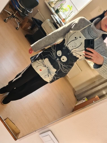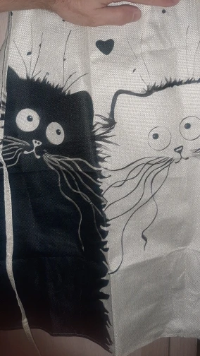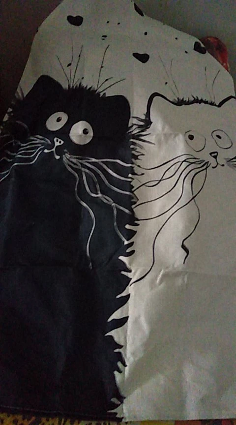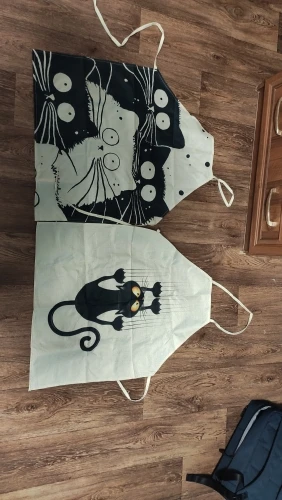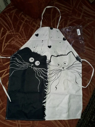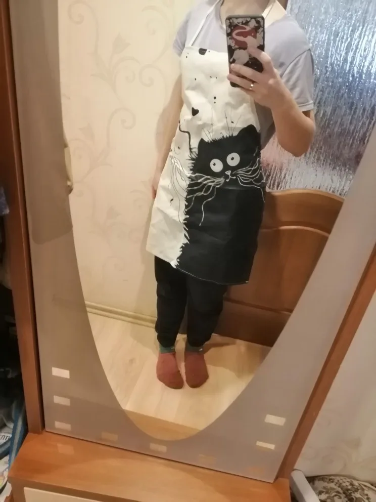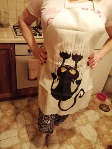 Фартуки шли долго, 3 месяца. Качество соответствует цене. Цвет "черного" кота скорее темно-зеленый. Есть небольшое расползание ткани (фото), но не критично. В общем - все нормально - рекомендую, если не хотите высокого качества.