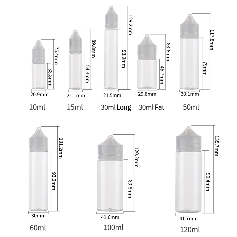 100 шт., пластиковые флаконы для жидкости для электронных сигарет, 10-60 мл
