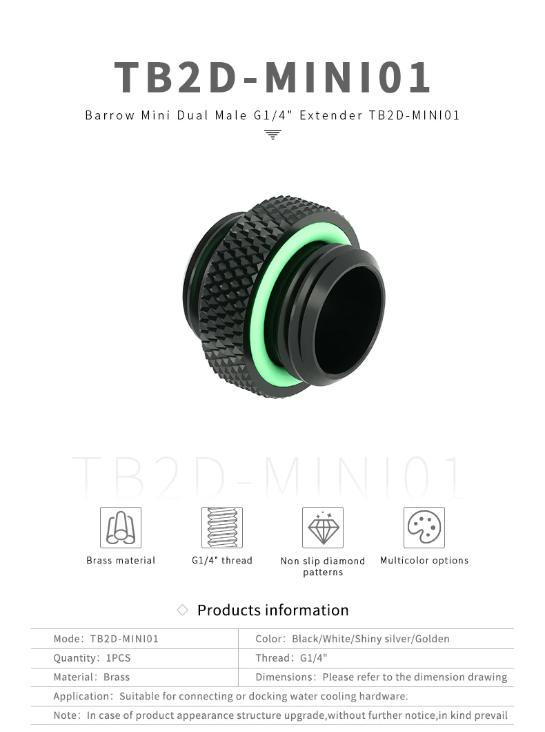 Адаптер Barrow G14 ''Mini Dual внешнее резьбовое соединение с двойной наружной резьбой для системы водяного охлаждения TB2D-MINI01