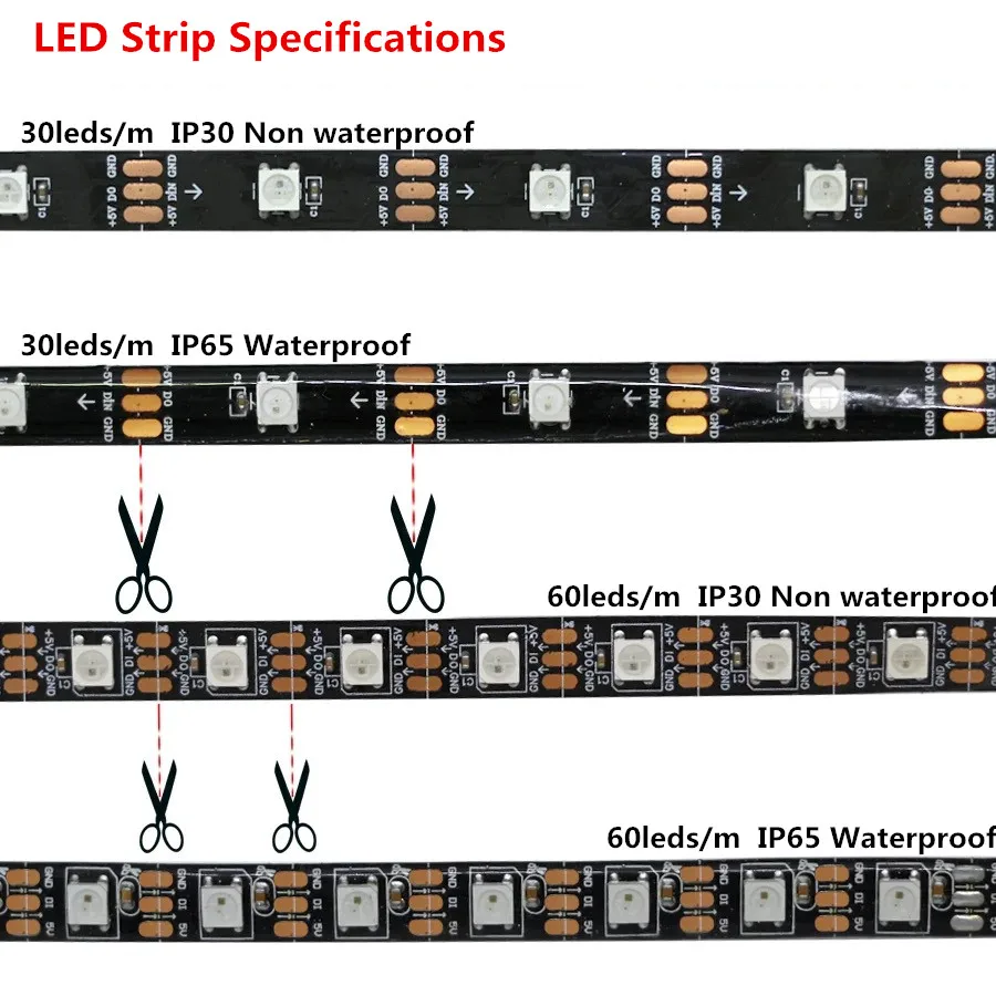 6. Светодиодный ресурс: WS2812B светодиодный (5050 SMD RGB светодиодный со встроенной улучшенной версией ws2812 ic) светодиодный: Каждый светодиодный отдельно управляемый светодиодныйТип IC: улучшенная версия ws2812 IC (встроенный светодиод 5050 smd rgb) IC: (1 IC дисков 1 led-чип)