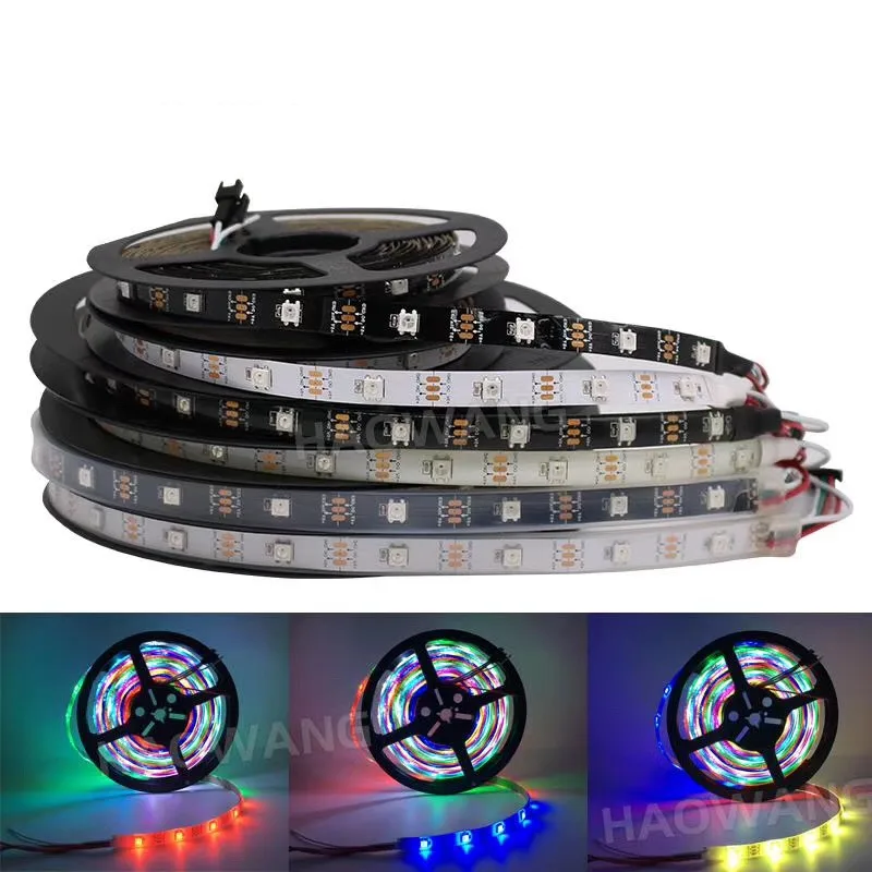 DC5V WS2812B 1 м/2 м/3 м/4 м/5 м 30/60/144 пикселей/м умный светодиодный пиксельный ленточный светильник, черный/белый PCB,WS2812 встроенный IC IP30/IP65/IP67