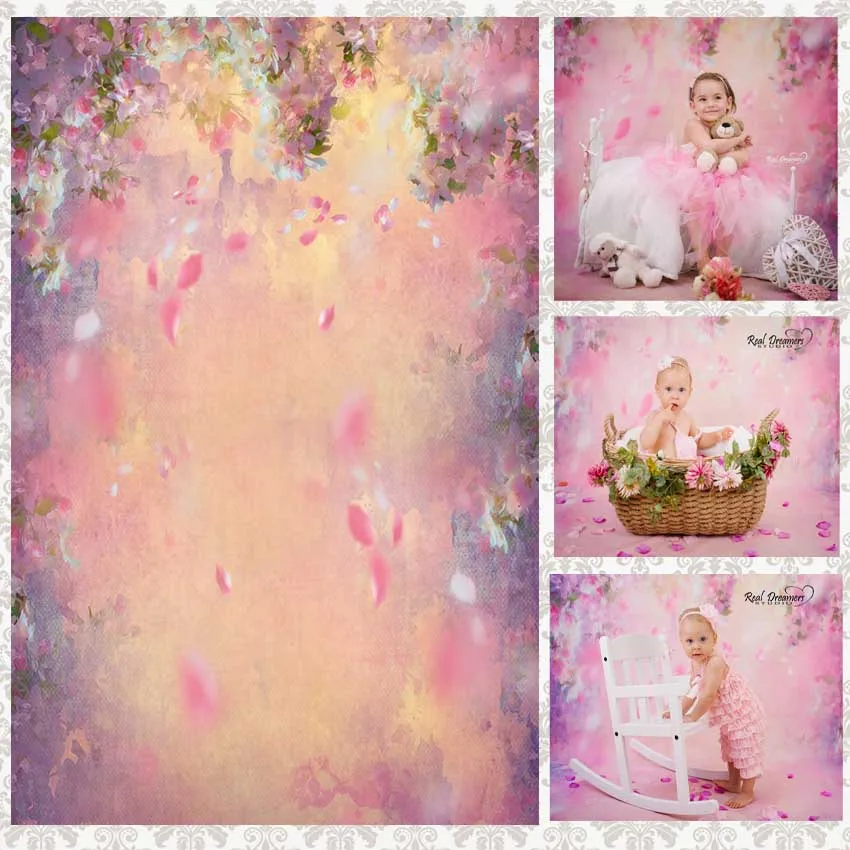 Виниловый фон для фотосъемки весенний цветочный масляный принт фиолетовый розовый цветок день рождения романтический декор детский фон для фотостудии