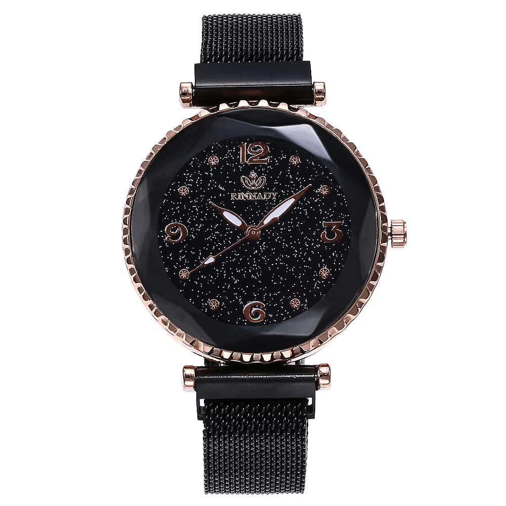 Часы женские, розовое золото, магнитные, водонепроницаемые, со стразами, звездное небо, 2019