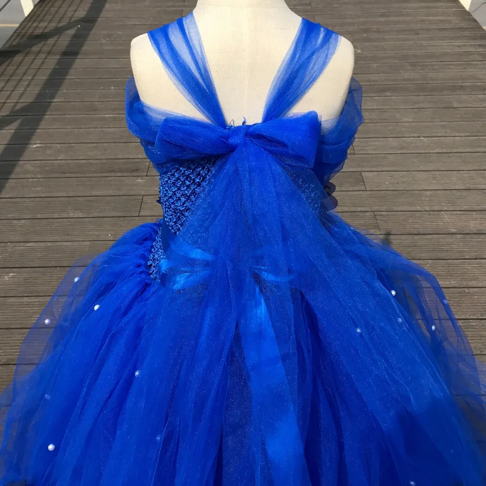 Детское свадебное платье POSH DREAM, Тюлевое платье ярко-синего цвета с цветочным ремнем и жемчугом