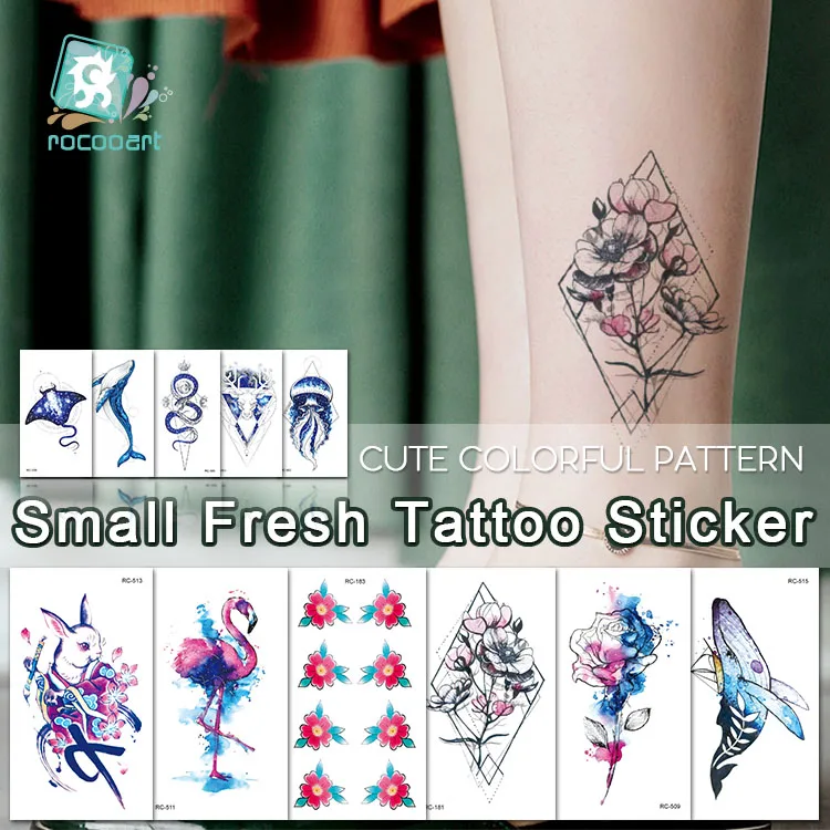 Rocooart, маленькие птицы, поддельные татуировки, цветок, тату, боди-арт, флеш-тату для женщин, ручная Татуировка, наклейки, Красочные Временные Татуировки