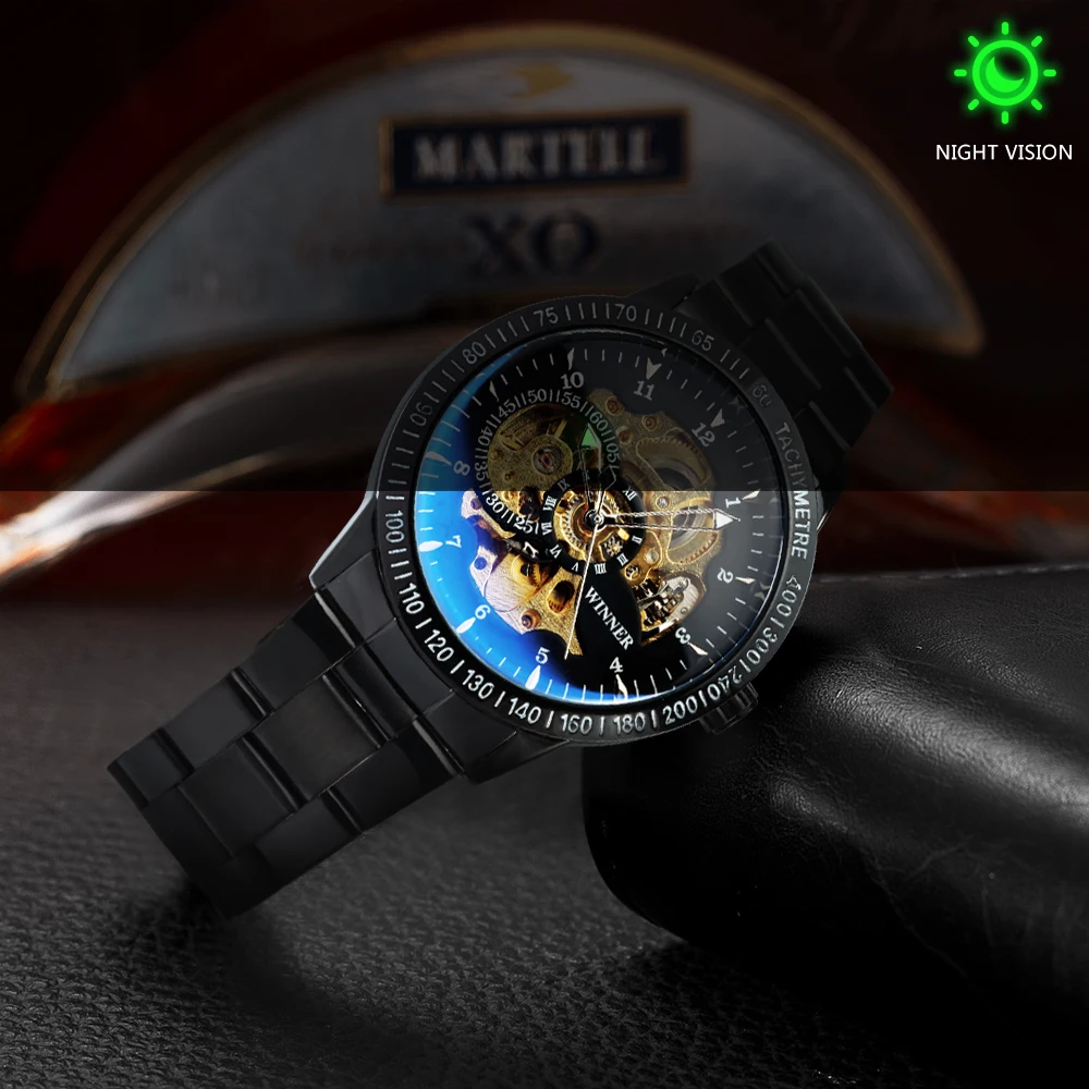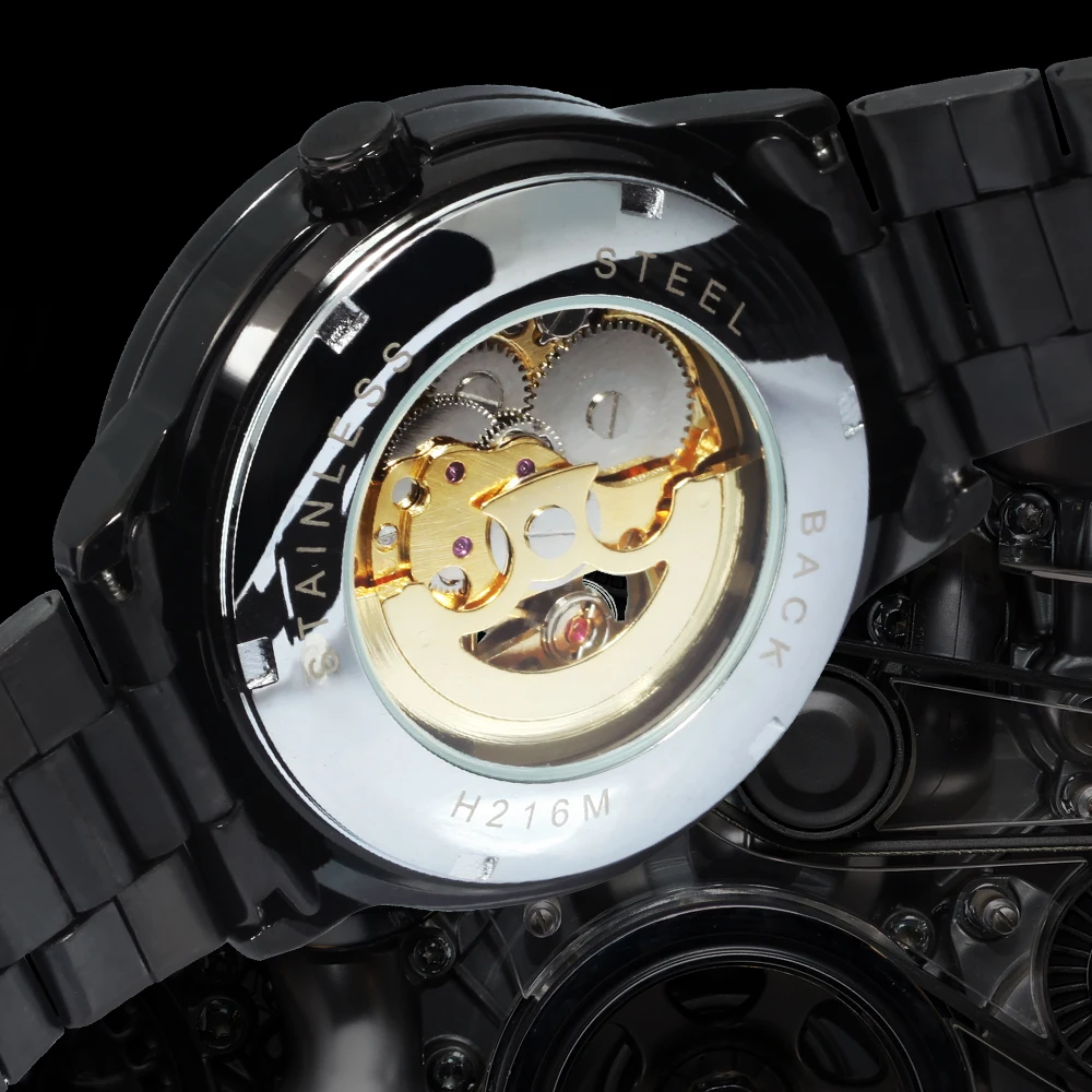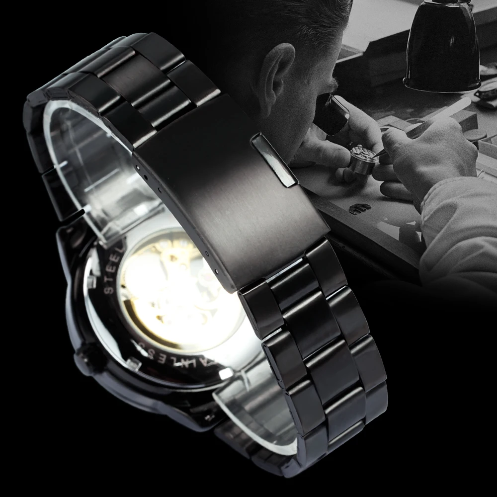 Автоматические механические часы для мужчин лучший бренд роскошные золотые часы с костями стимпанк мода из нержавеющей стали ремешок часы мужские