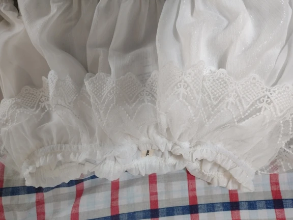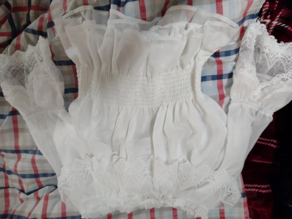 Милая Базовая Блузка, базовая в любом гардеробе Лолиты, так как она может сочетаться во многих направлениях, растягивается много, мне нравится форма рукавов, милый, но не слишком ОТТ, поэтому он более универсальный, а также можно носить с юбками и многими стилями. Пришел быстро. Он немного прозрачный, но не слишком большой. Выглядит как воздушная шифоновая ткань, слегка мерцающая, которая мне нравится.