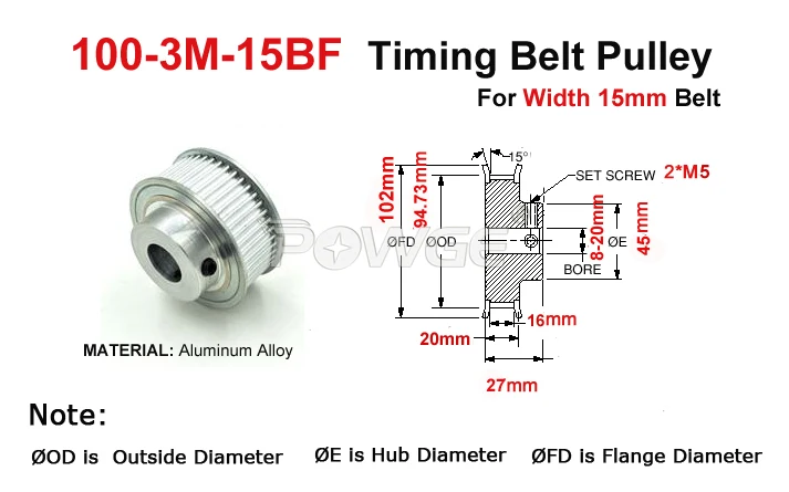 P0WGE 100 зубцов 3 м зубчатый шкив Диаметр отверстия 81012151920 мм подходящая ширина 15 мм 3 м зубчатый ремень 100 т 100 зубьев HTD3M шкив 100-3 м