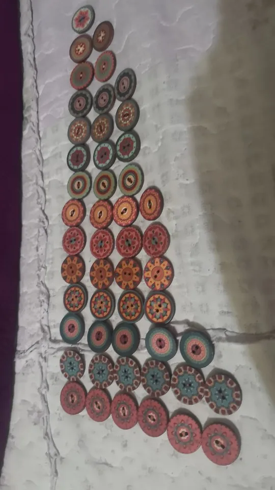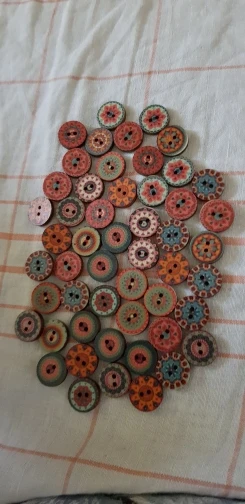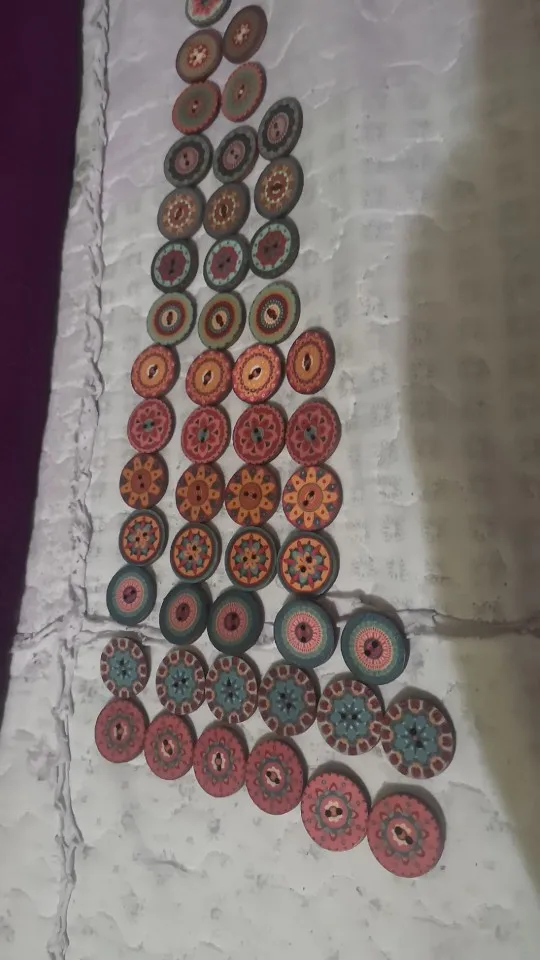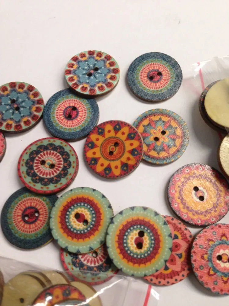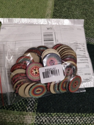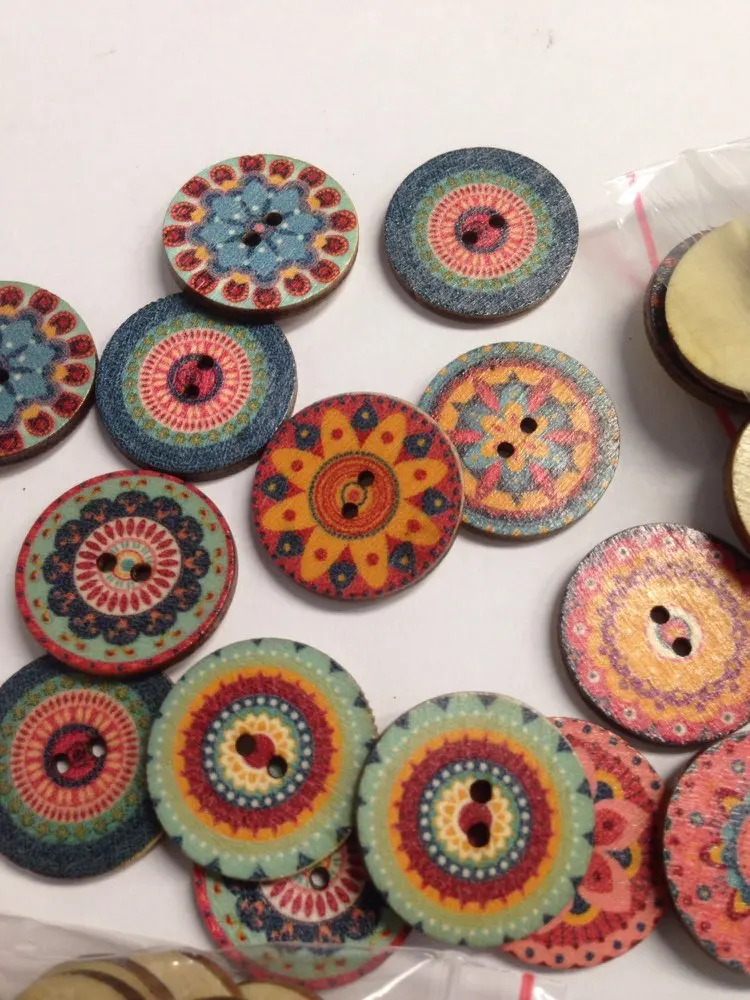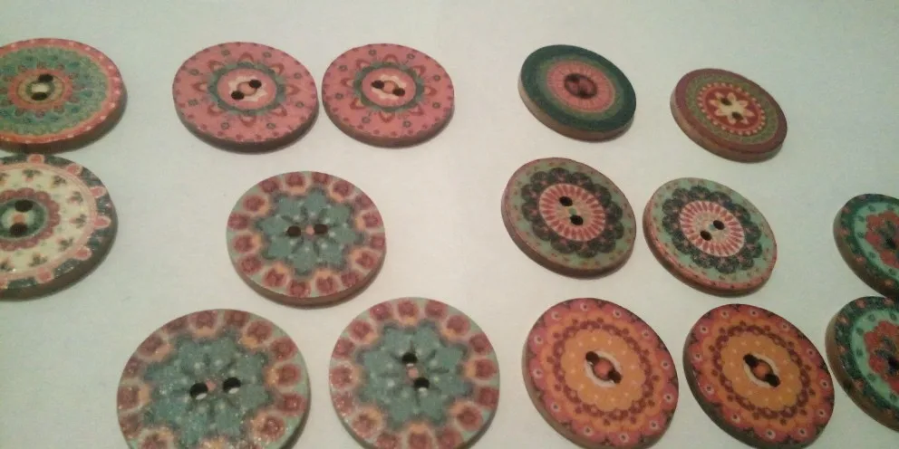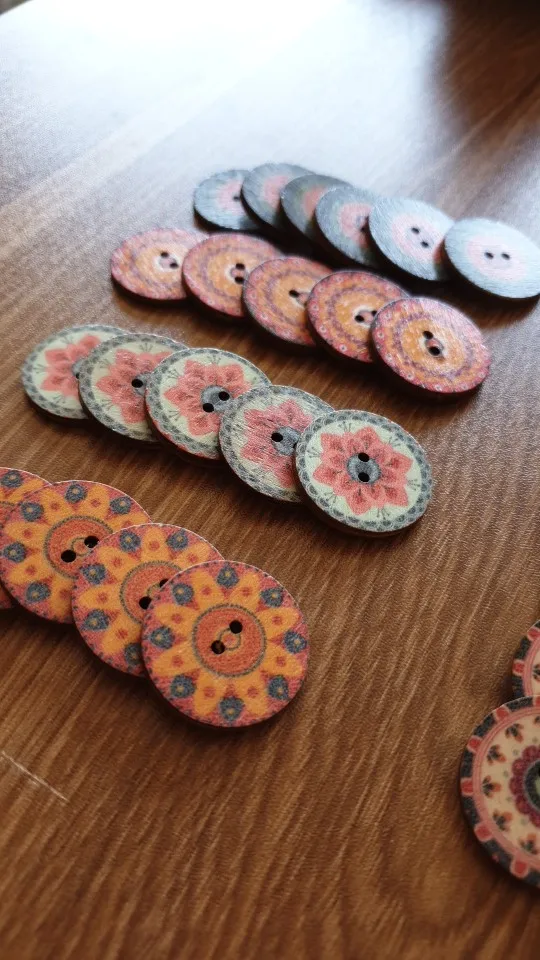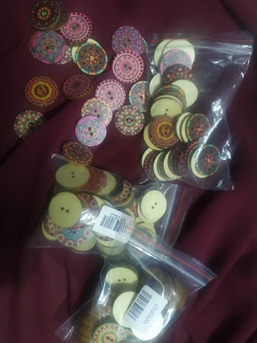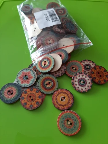 Пуговицы деревянные, дизайн мандалы (Сакральное схематическое изображение либо конструкция, используемая в буддийских и индуистских религиозных и эзотерических практиках) интересный и необычный рисунок. Пуговицы декоративные можно применять в одежде, в интерьере, можно использовать для различных поделок. Я буду применять в отделке боковых в портьерных. Размер 1 пуговицы 25 мм. В упаковке 50 шт. Сроки доставки очень порадовали. Рекомендую. Однозначно буду заказывать ещё.