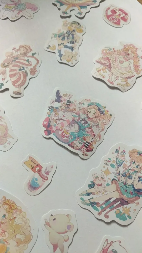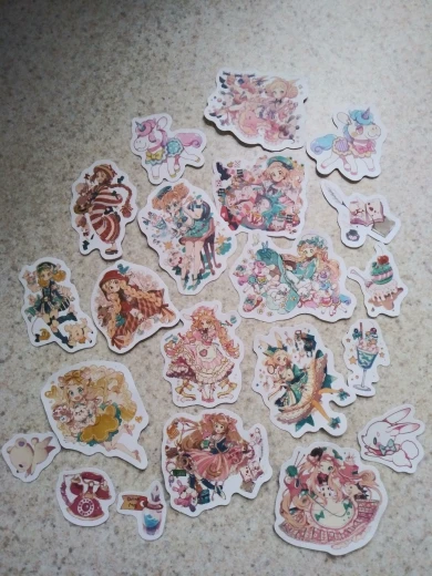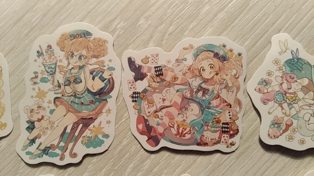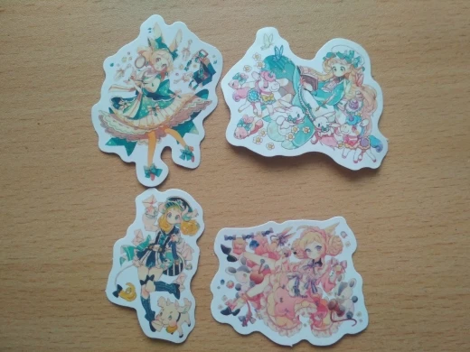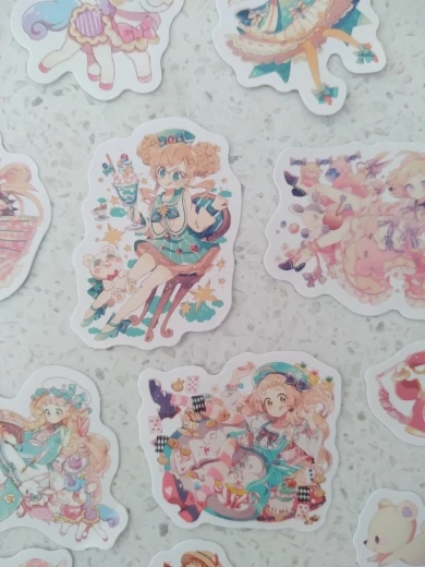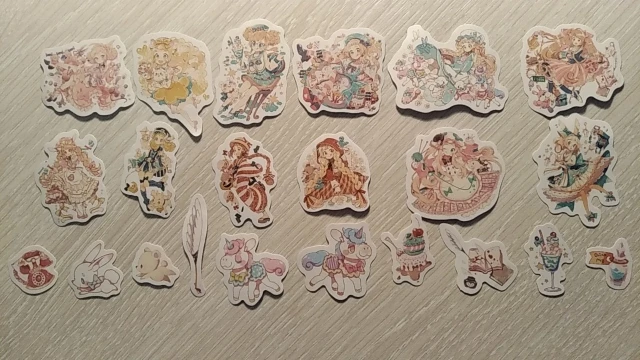 Всего 21 или 22 наклейки (я все время терял счет lmao), большинство из них Волшебные девушки, но четыре волшебных привычных животных, и шесть предметов, которые, я думаю, могут пройти как волшебные (волшебное мороженое парфа? Idk) но все наклейки подходят для общей эстетики. Они в стиле аниме, как будто были нарисованы одним художником. У меня нет двойников. Качество толстое, матовое, слегка гладкое. В целом, за меньше, чем в долларах CAD, я очень впечатлен.