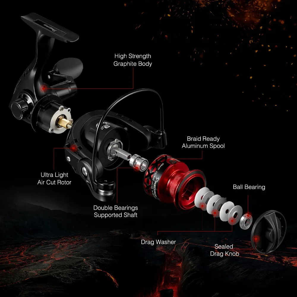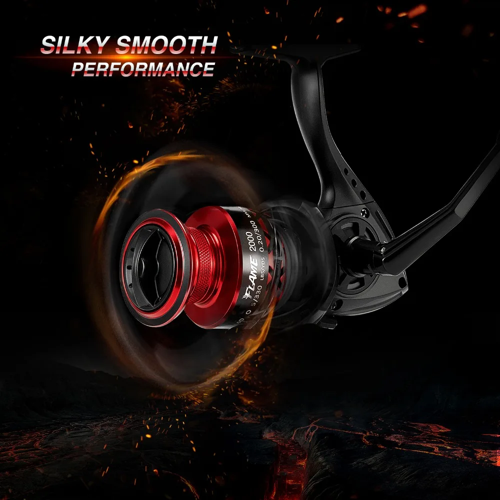 1. изысканный внешний вид-Матовый черный корпус в паре с катушкой красная Алюминиевая, отлично указывает на его название пламени. Вы будете польщены, имея эту острую и современную спиннинговую катушку с уникальным полым корпусом, х-образной катушкой и индивидуальной ручкой. Гораздо более продвинутые ощущения, чем другие катушки по своей цене.