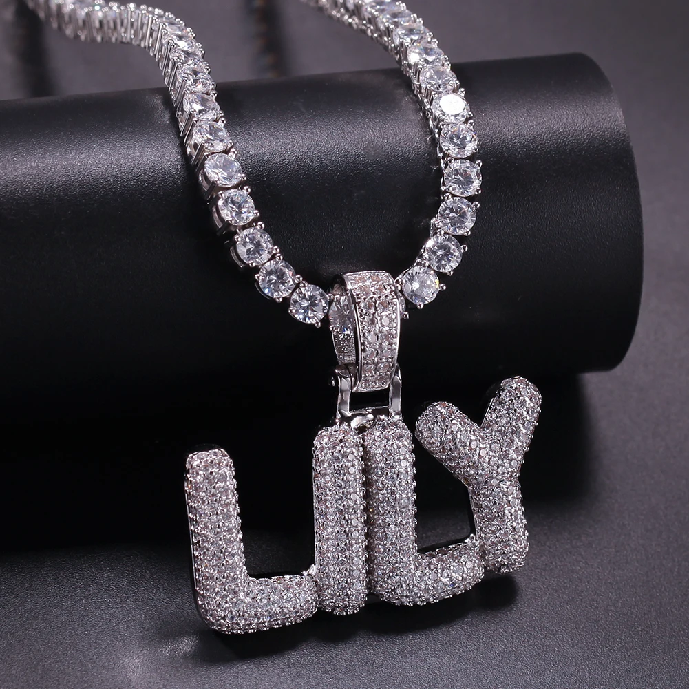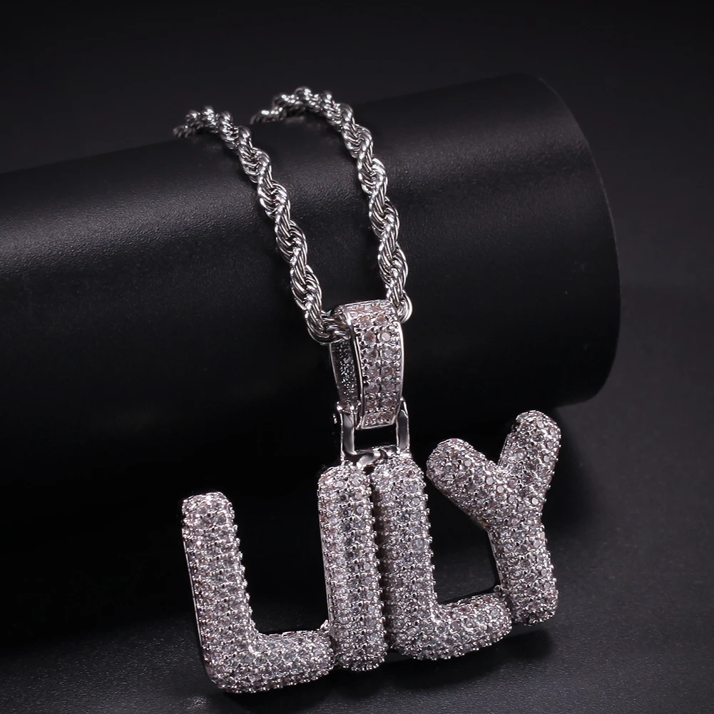 Цепочка с кулоном с фианитом, 4 мм, маленькая, с именем на заказ
