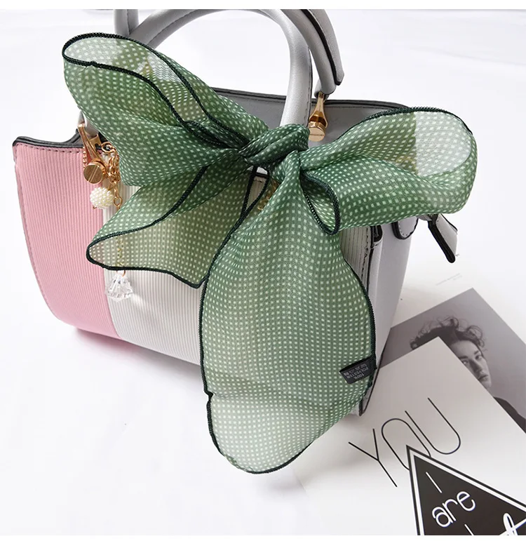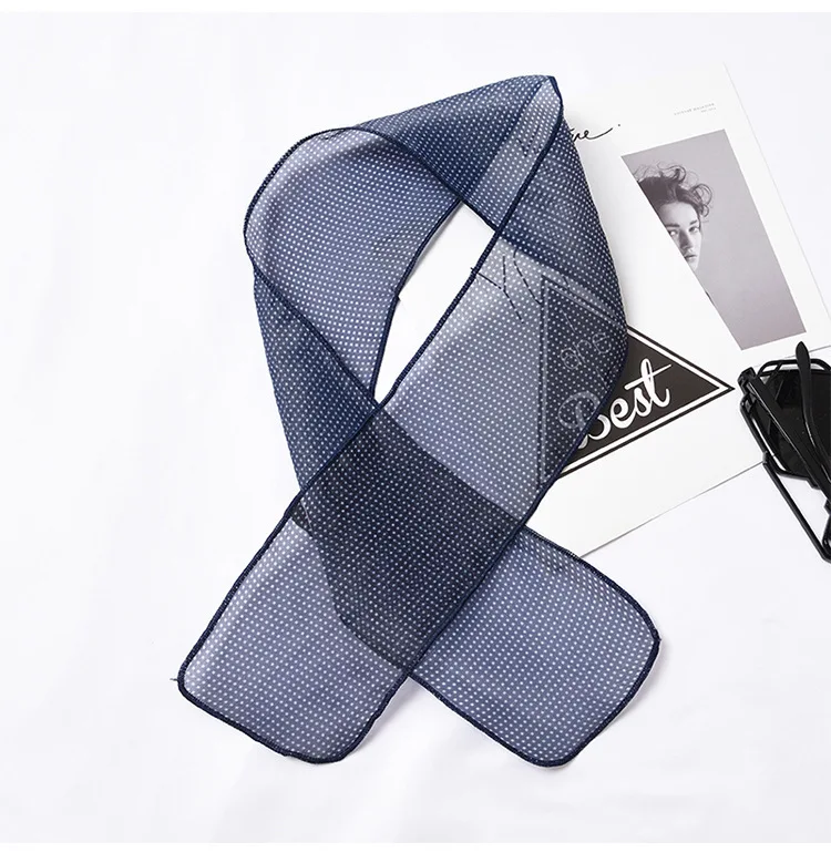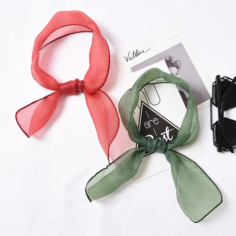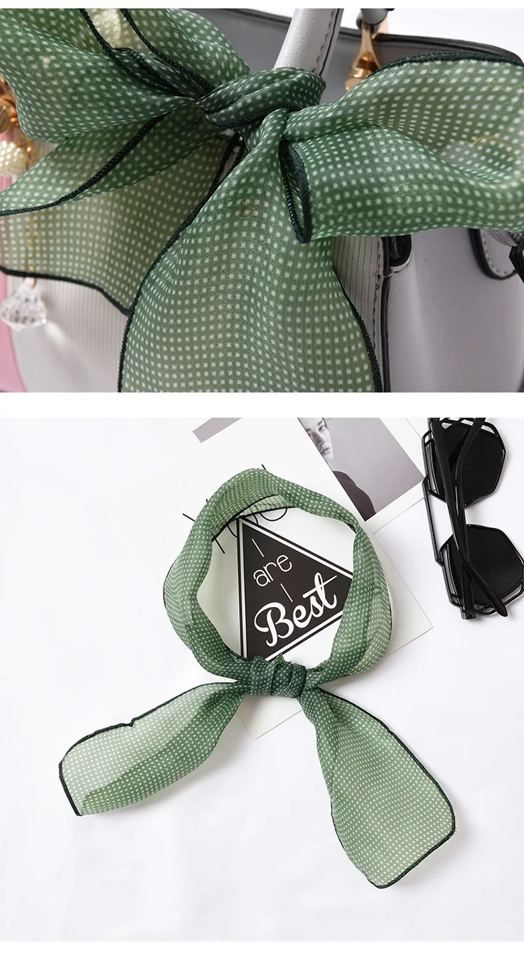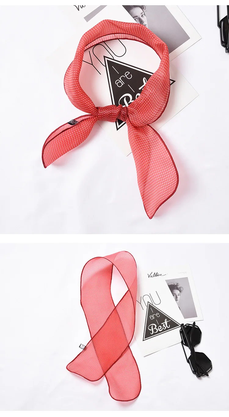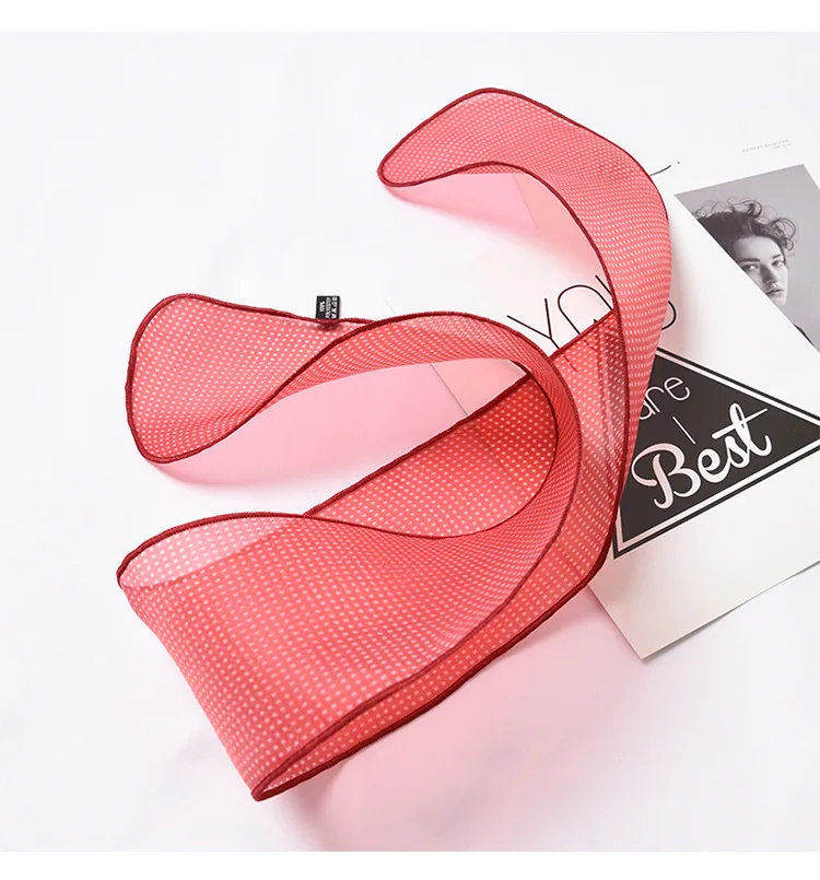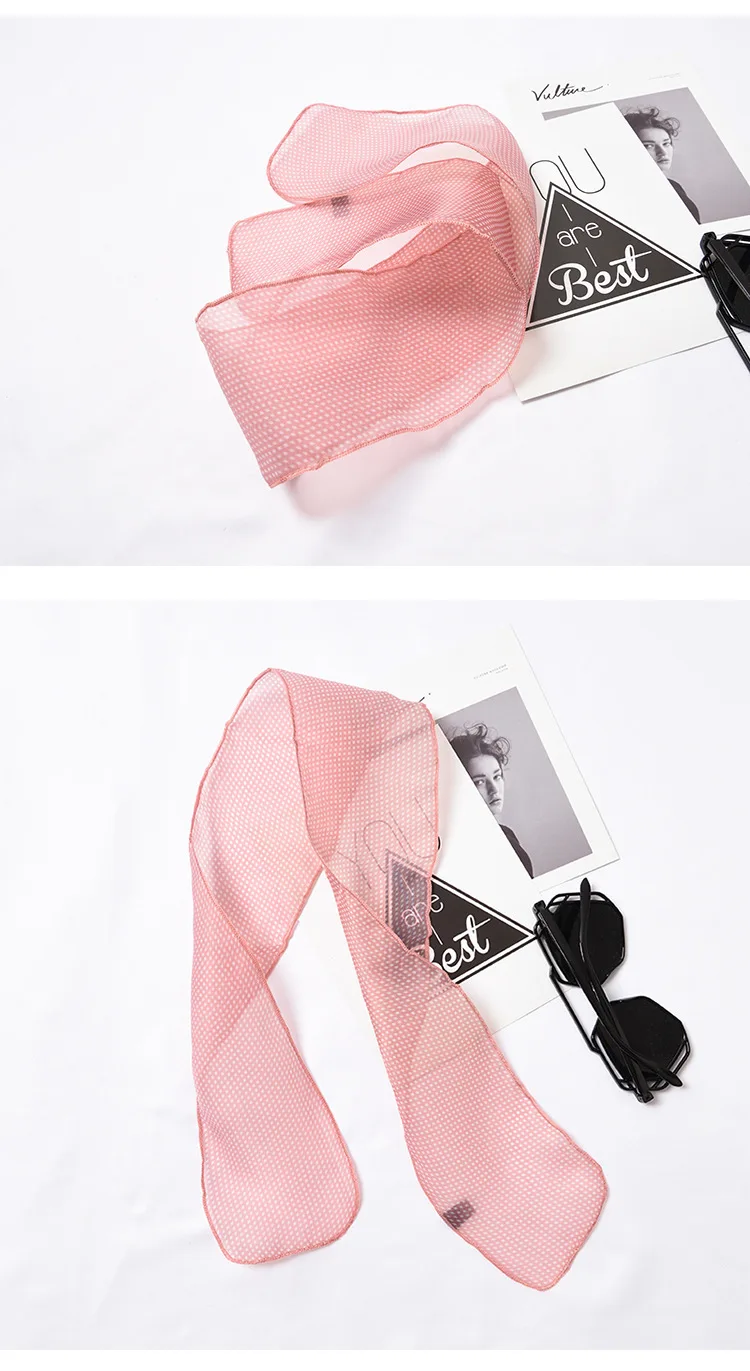 Легкий и тонкий шелковый шарф, Женский контрастный декоративный шарф в горошек, шикарный Воздухопроницаемый бандажный мешок, тонкий весенний шарф