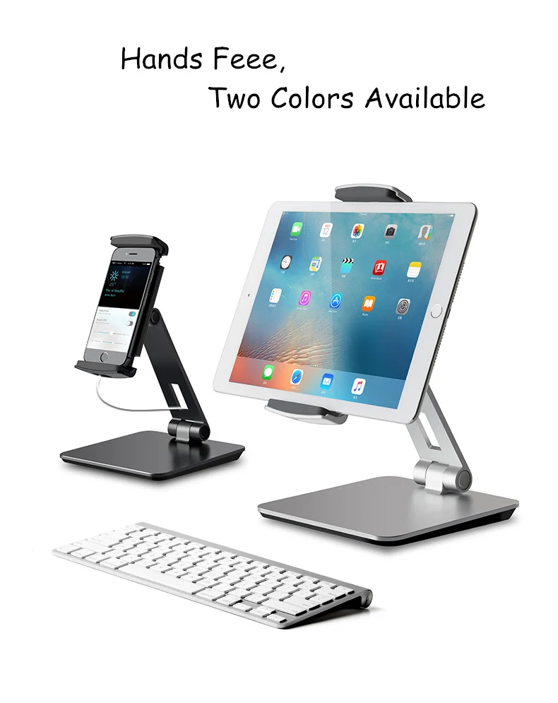 Стабильная и прочная: Подставка для планшета с тяжелым металлическим основанием обеспечивает стабильную платформу и высококачественную алюминиевую складную раму, чтобы сделать ее прочной.