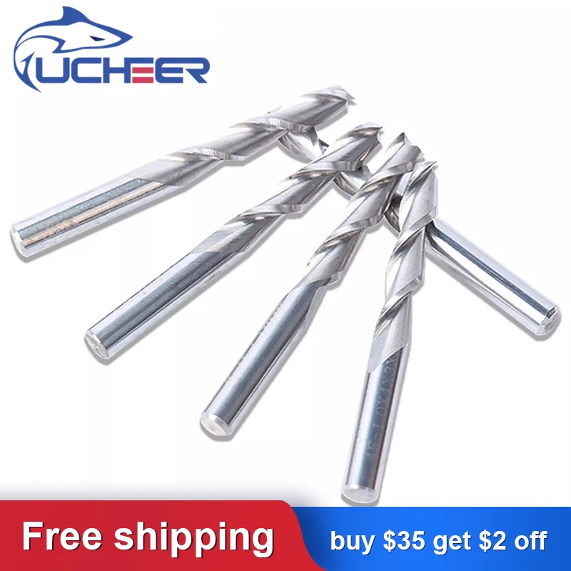 UCHEER 15 штук, Размер 6 мм 2 флейты Спираль Концевая фреза для станка с ЧПУ концевая фреза для МДФ дерево Вольфрам инструмент карбида cricut машины