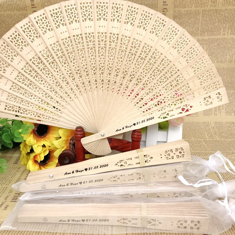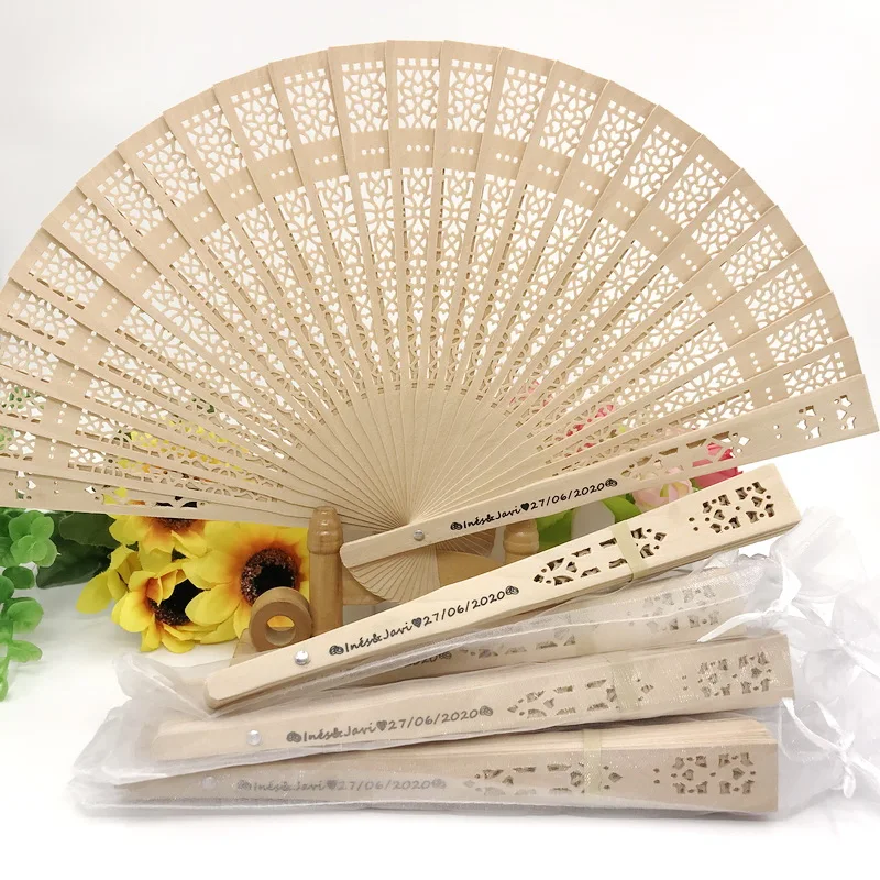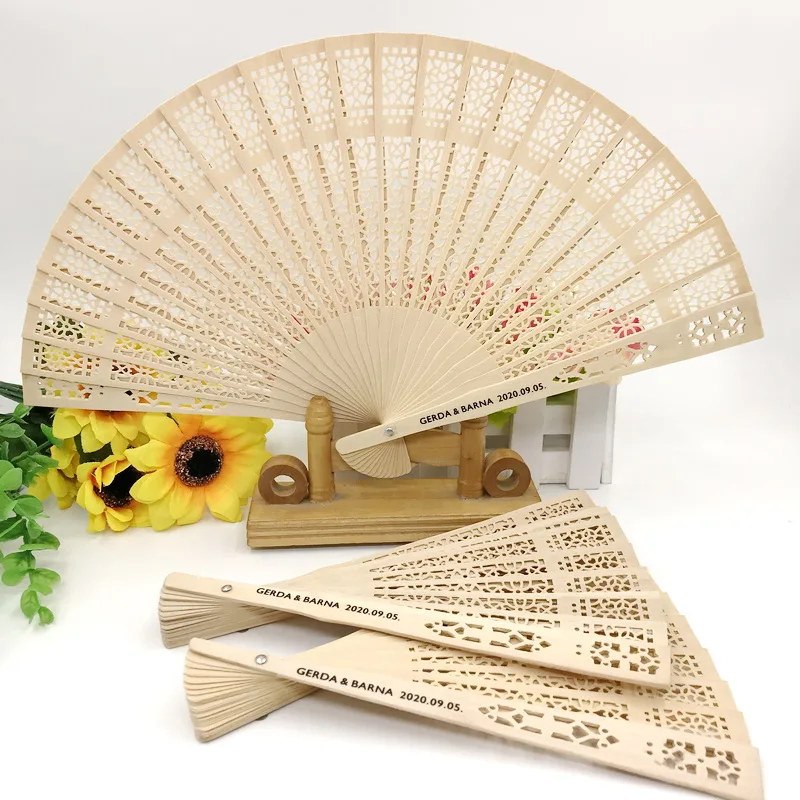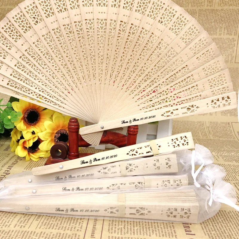 70 шт., сандалии с принтом на заказ, деревянные веерные свадебные сувениры, китайские деревянные складные вентиляторы, индивидуальный подарок, Прямая доставка