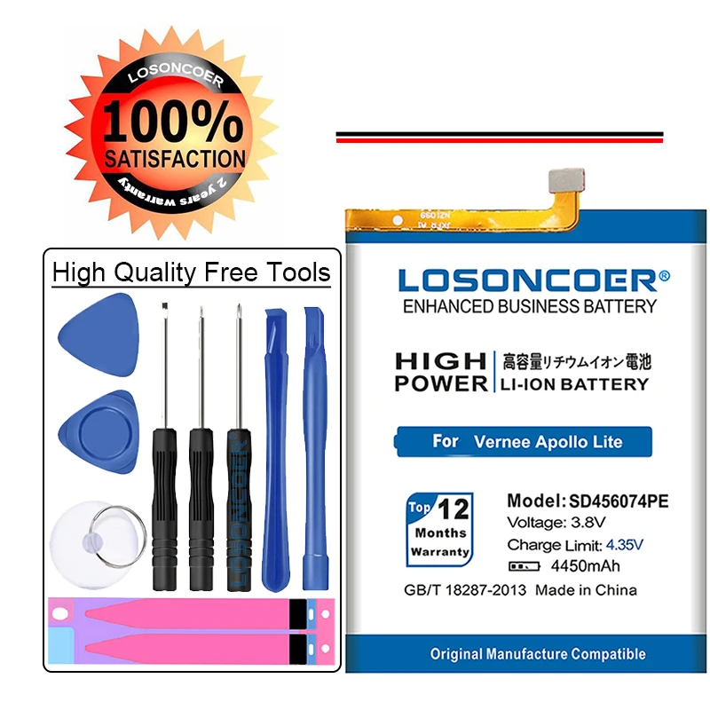 LOSONCOER SD456074PE 4450 мАч высококачественные батареи для Vernee Apollo Lite в наличии