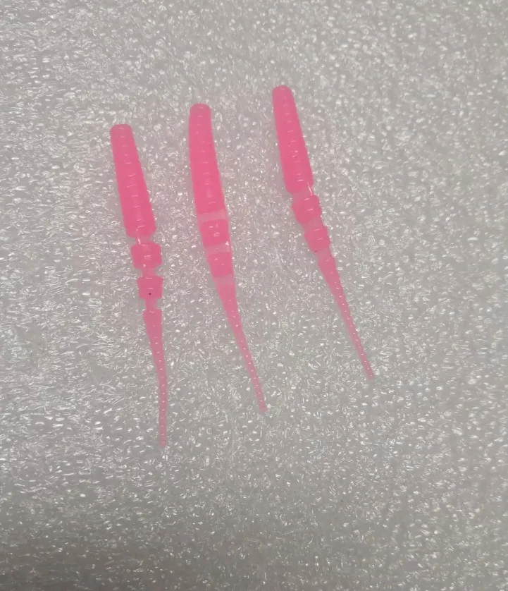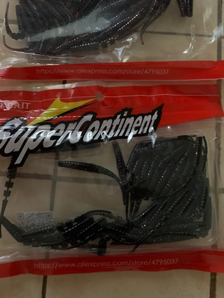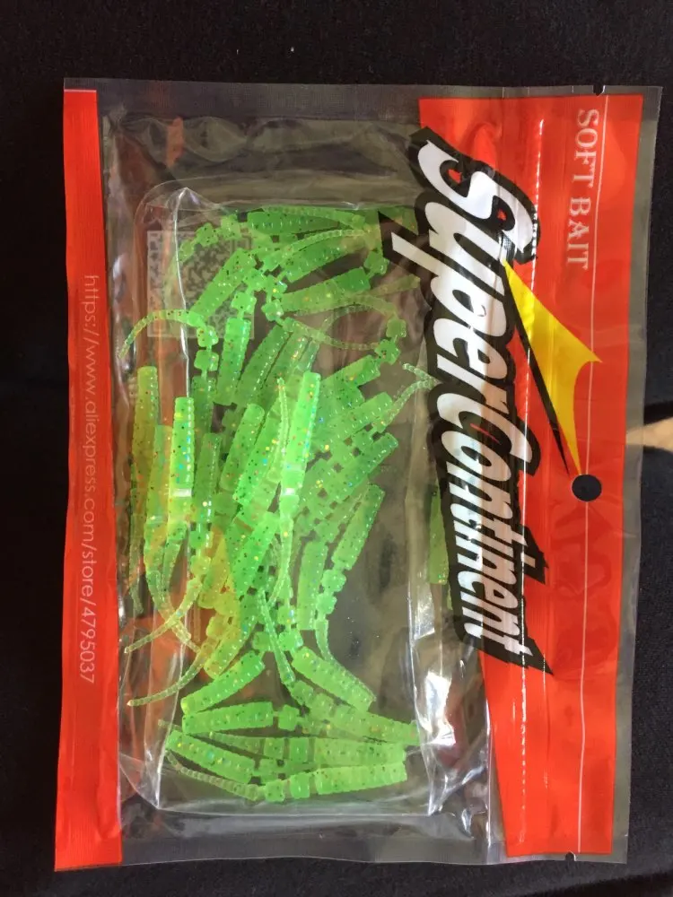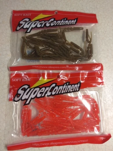 Силикон мягкий чуть меньше 45мм, в какой то смазке, запах резины с чем то. Ровно 50 шт в упаковке. Доставка чуть меньше месяца в Белгородскую область. Рекомендую товар и продавца! Думаю окунь оценит. Как разловлю отпишусь.