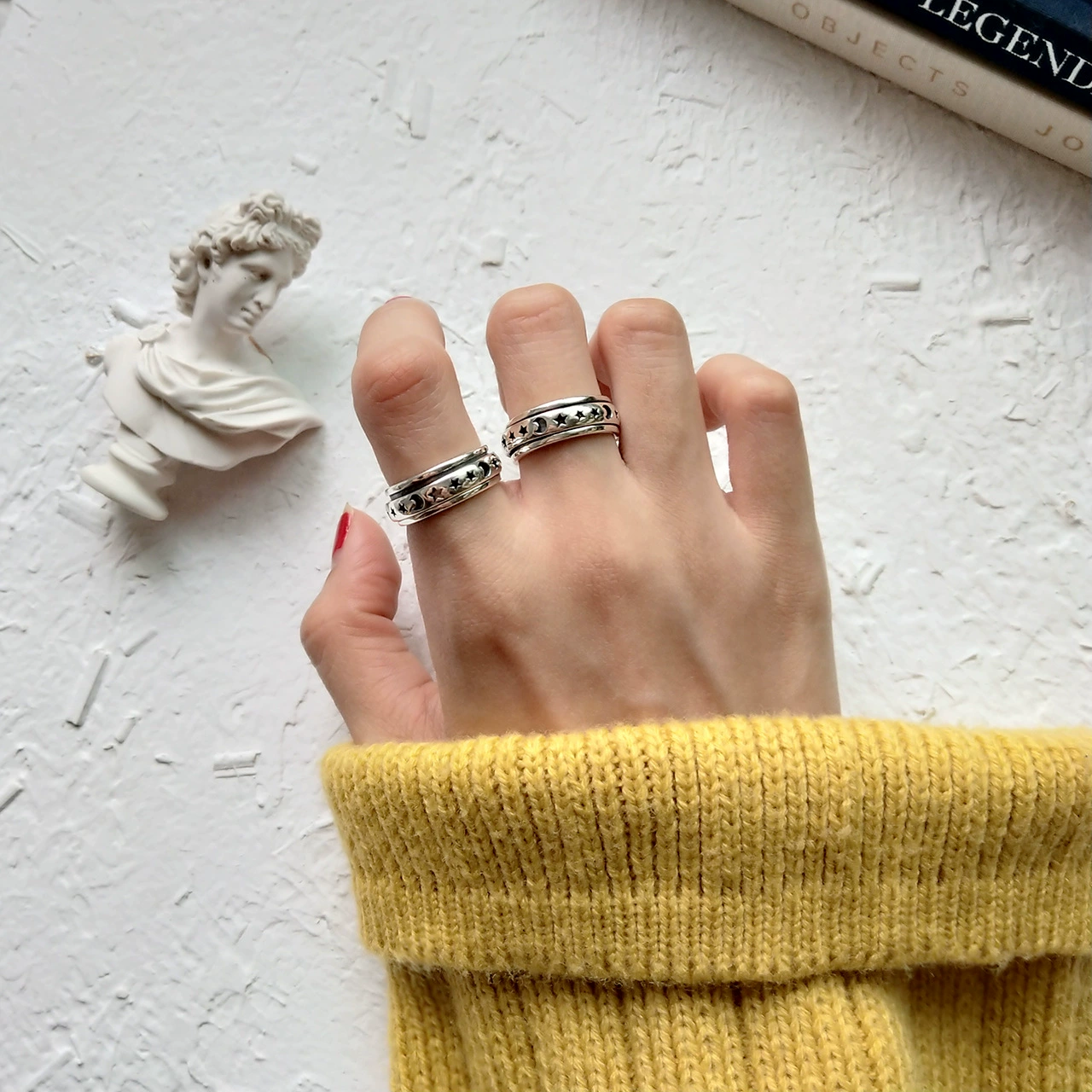 Название:100% Аутентичное кольцо в стиле ретро из стерлингового серебра S925 пробы с Луной и звездой, ювелирные украшения J195