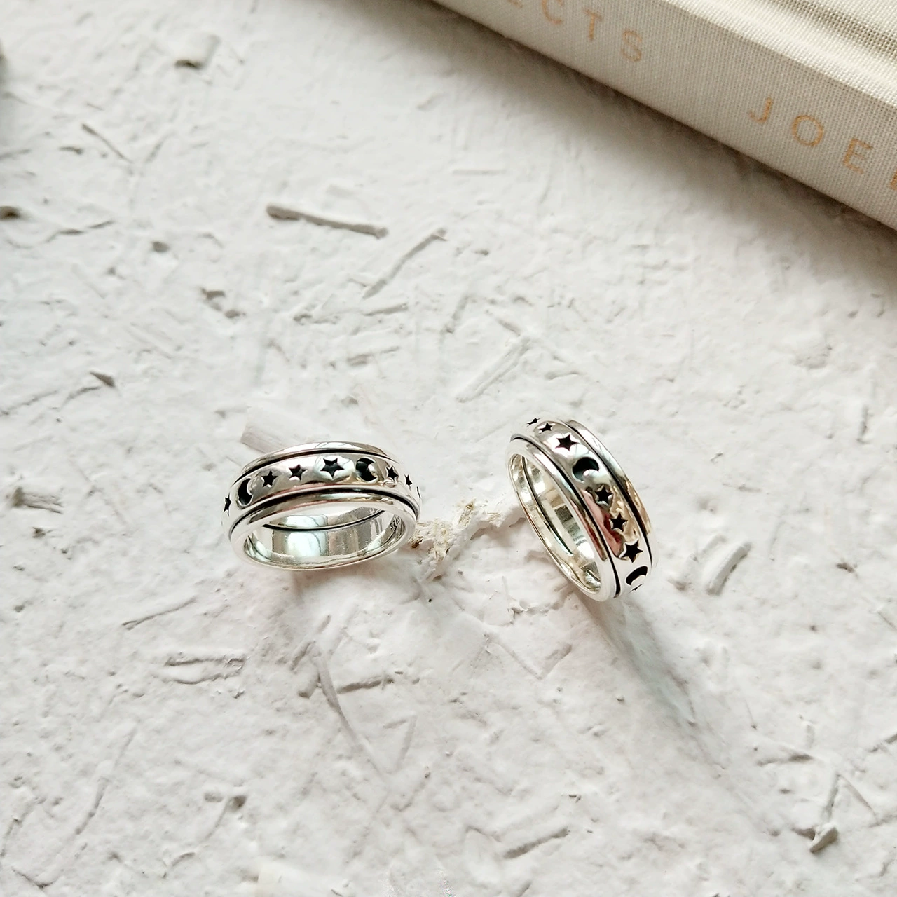 Кольцо из серебра 100% пробы с поворотной Луной и звездами, 1 шт.