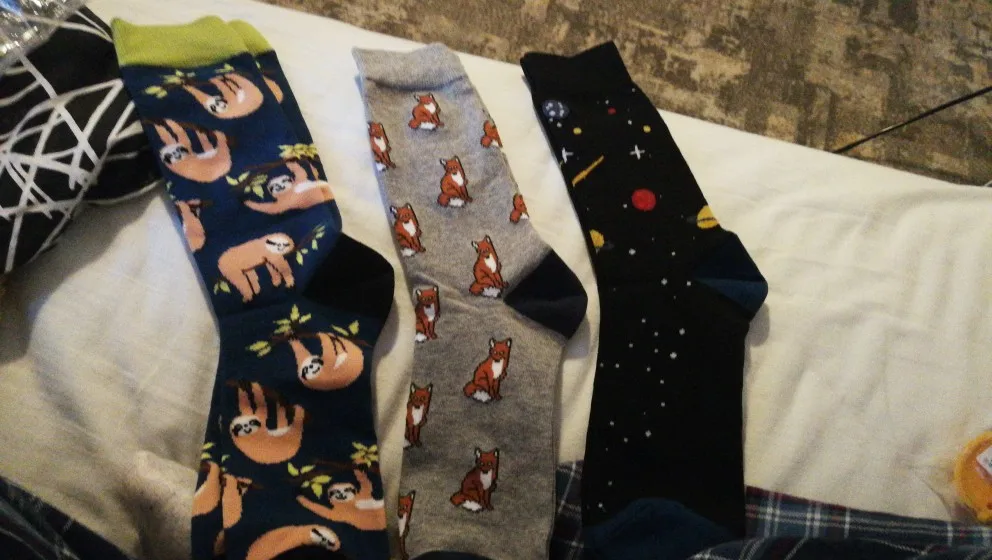 VPM 2019 большой Размеры хлопковые носки мужские хип-хоп и в стиле Harajuku; Смешные счастливых лиса платье с компрессионным эффектом носки для мальчиков на свадьбу, Рождественский подарок