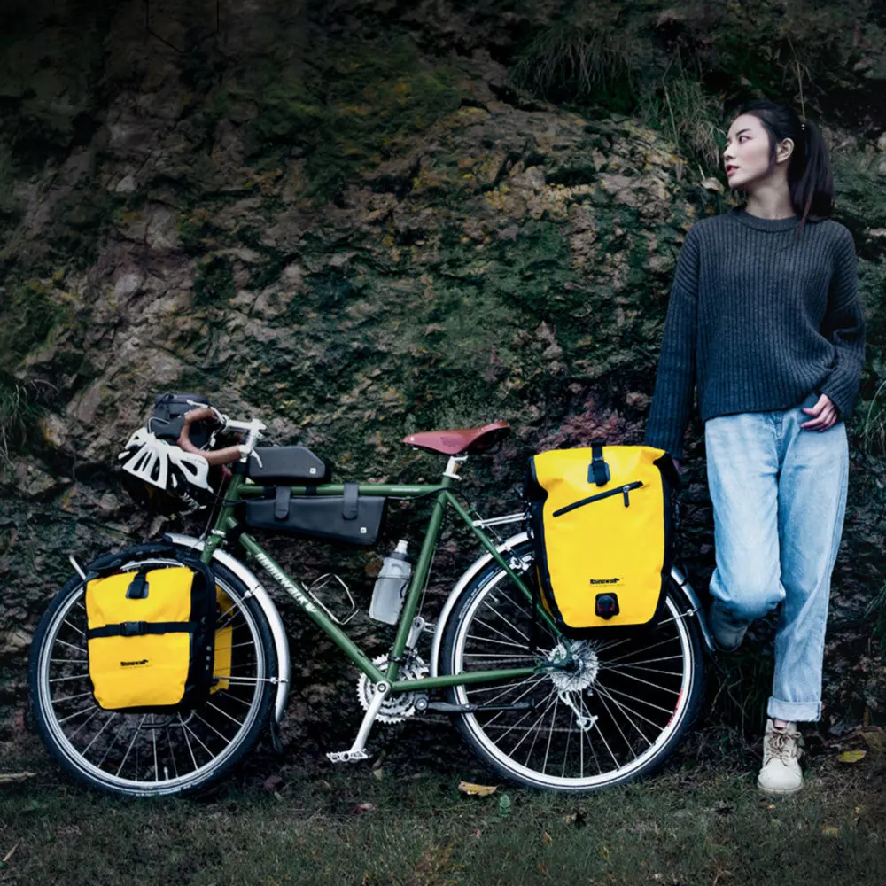 Велосипедная сумка Rhinowalk 25-27L, полностью водонепроницаемая, для горного и шоссейного велосипеда, задняя багажная сумка, улучшенная дорожная велосипедная складная сумка