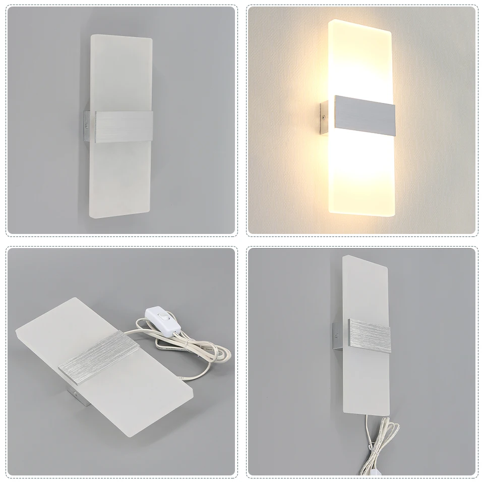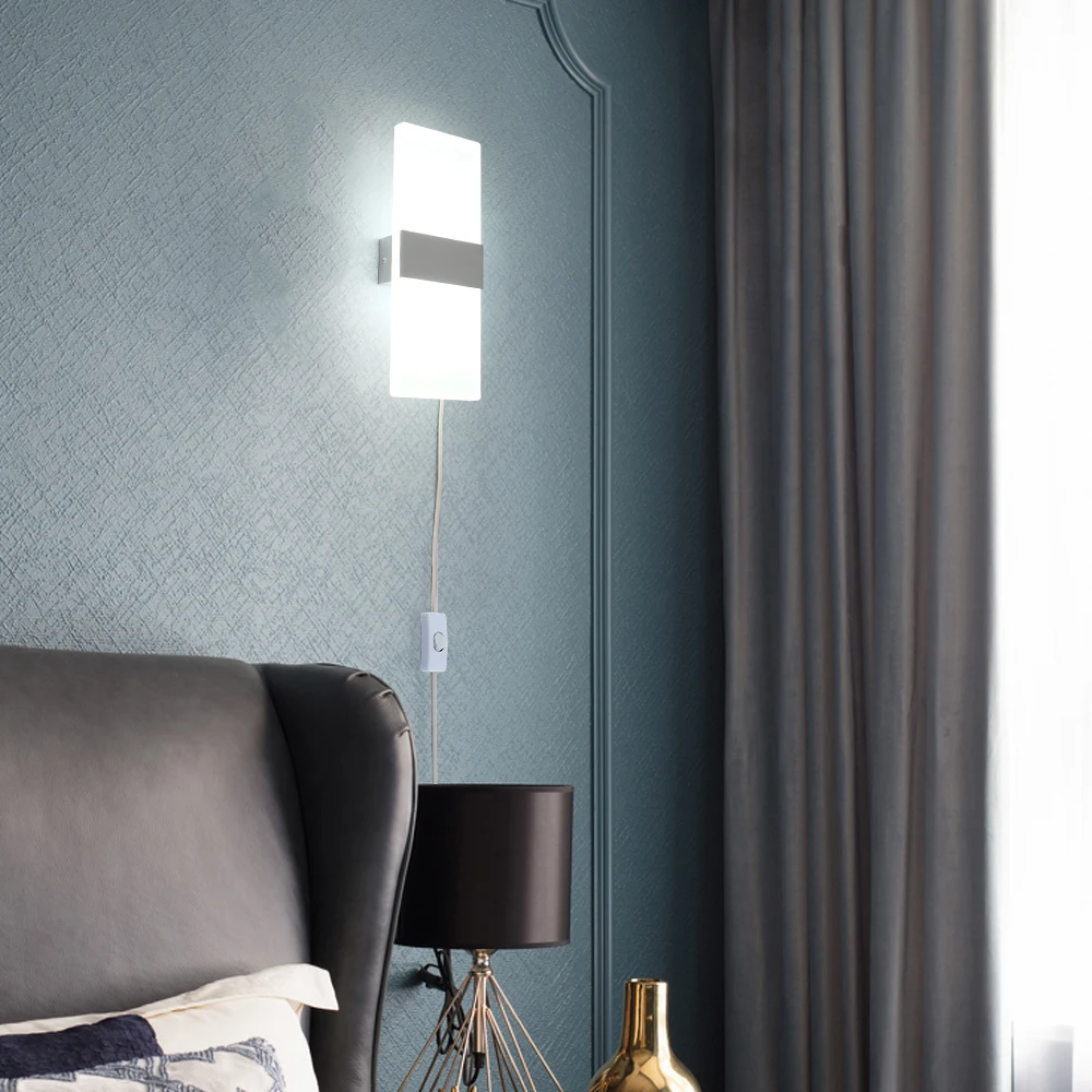 Приглушаемый комнатный светодиодный настенный светильник с переключателем и датчиком движения, современная настенная лампа с вилкой для современной спальни, 6 Вт12 Вт OREAB