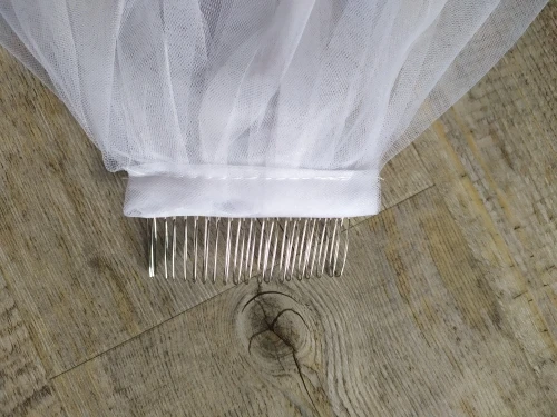 Фата отличная. За 240 рублей, просто супер. В магазинах за такую же отдала бы в 3 раза больше . Но мне показалась что не в ту стороны гребень . Пришла быстро. Нитки не торчат. Все супер