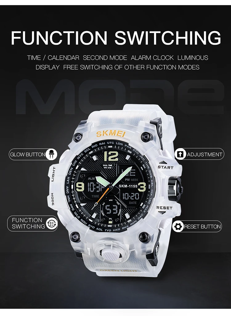 Часы SKMEI мужские спортивные, с большим циферблатом, кварцевые, цифровые, светодиодные, военные, водонепроницаемые