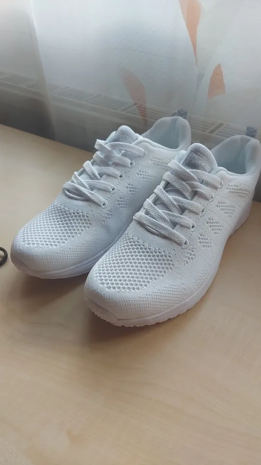 Кроссовки понравились. Легчайшие. Белоснежные. Качество хорошее, все повёл и крепко на вид. Пришли тоже относительно быстро. Только по размеру большие оказались. Брала 8 на 39 русский, нужно на размер, а то и 1,5 меньше