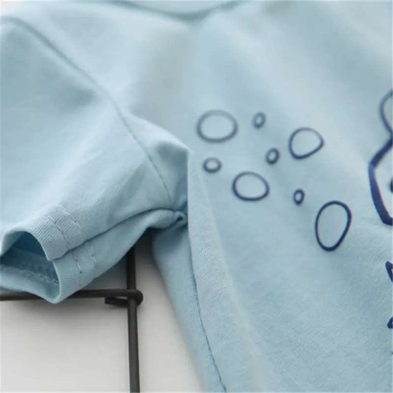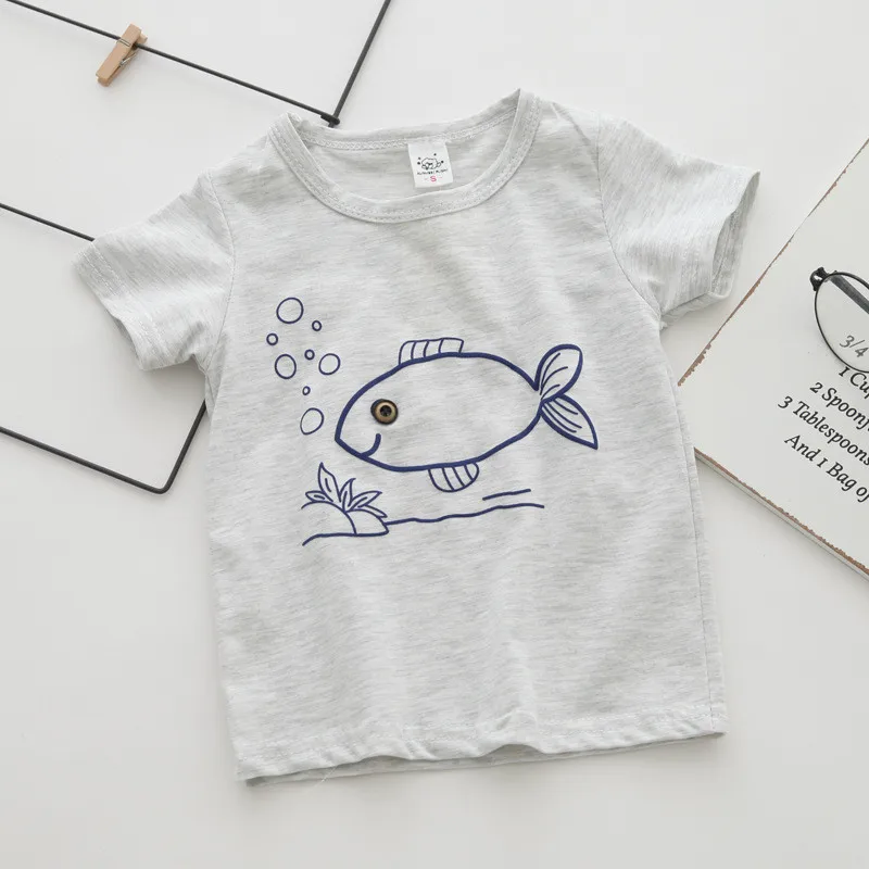 Футболки с коротким рукавом для мальчиков хлопковая одежда для мальчиков футболка для малышей Повседневный Топ с рисунком рыбы, одежда для мальчиков на первый день рождения