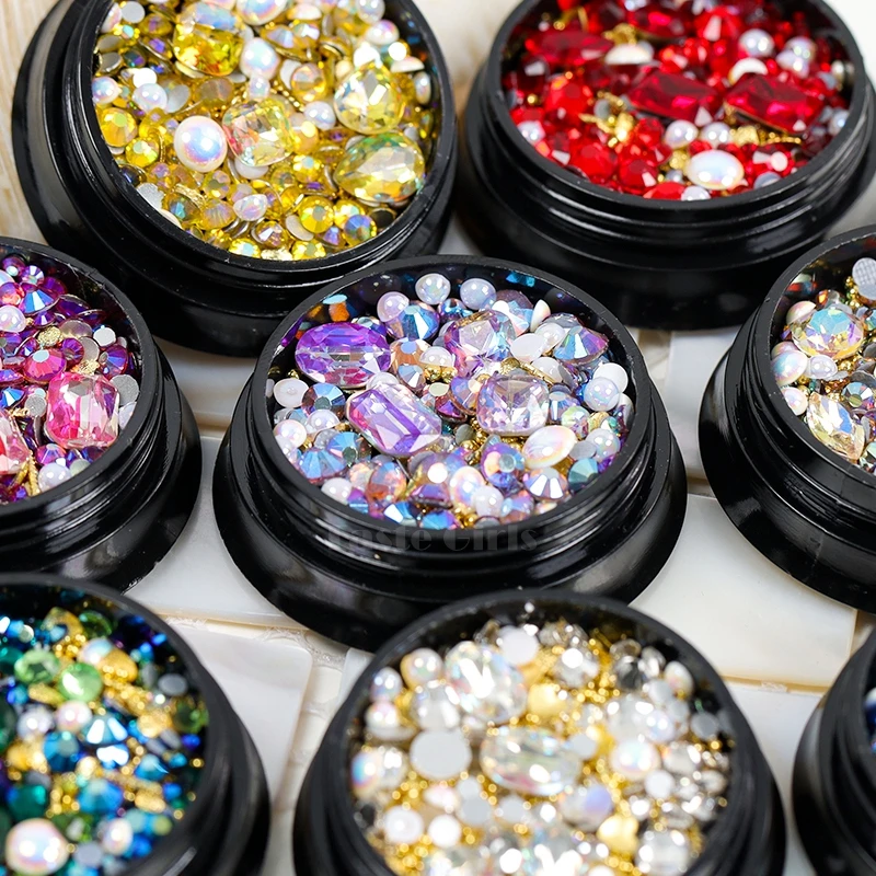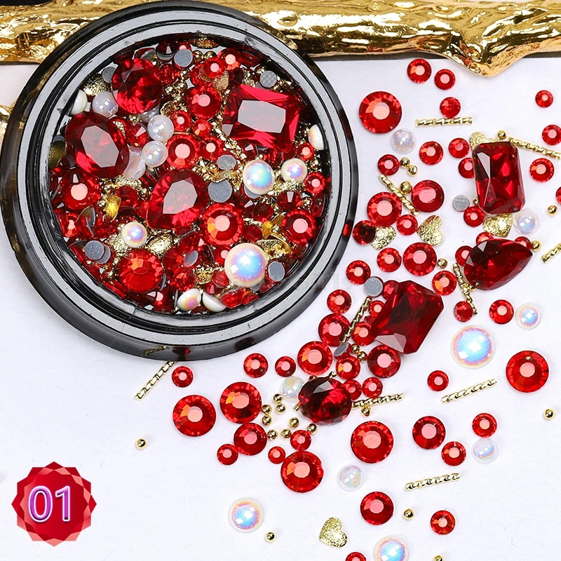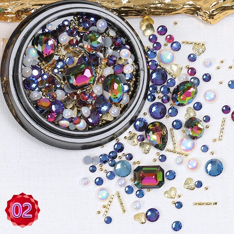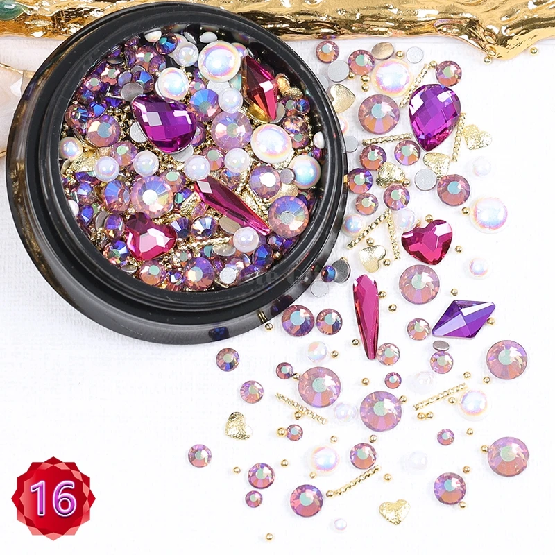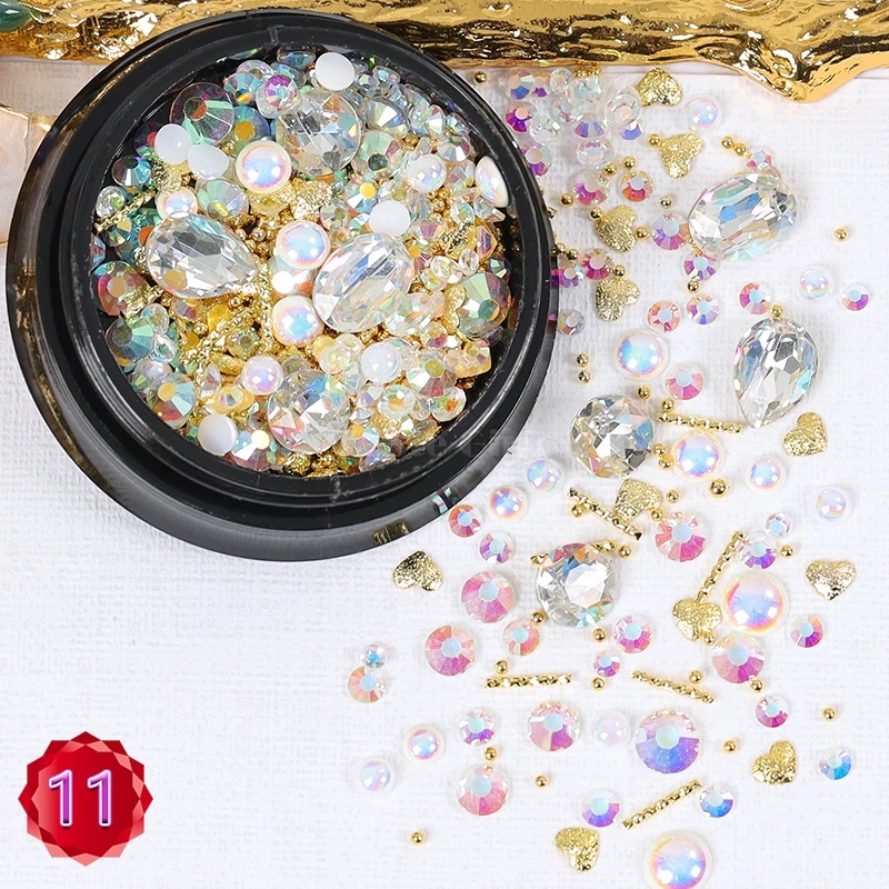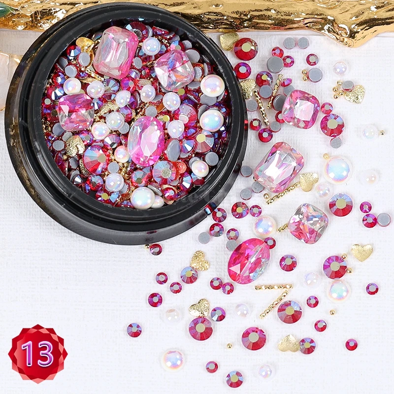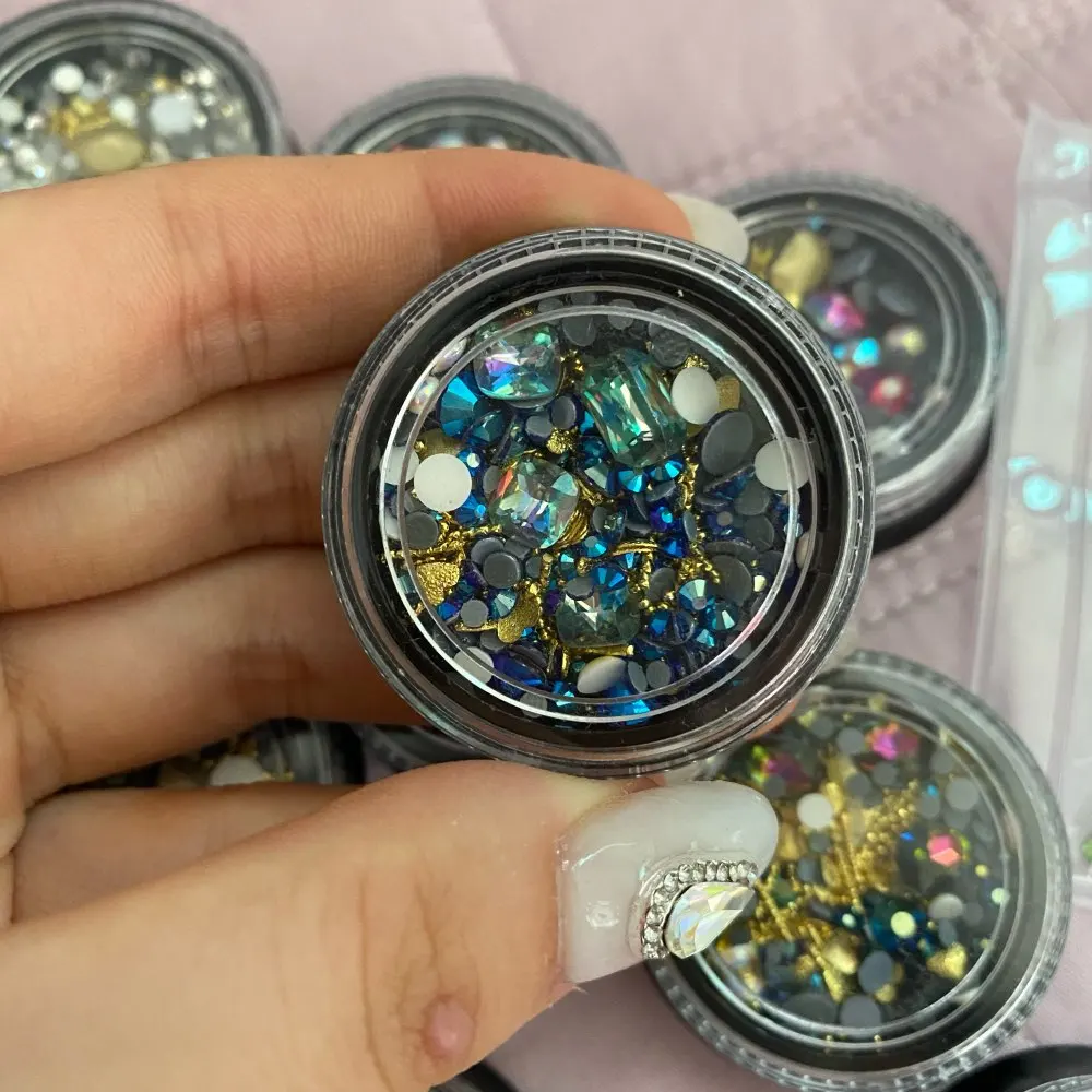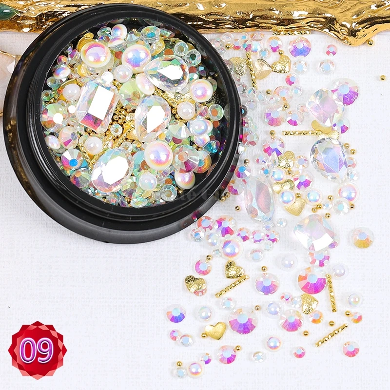 1 баночка, формы смешивания блестящие алмазные жемчужины, металлические скрученный стержень бусин, матовое сердце, дизайн ногтей, стразы, самоцветы, наклейки для маникюра, советы сделай сам