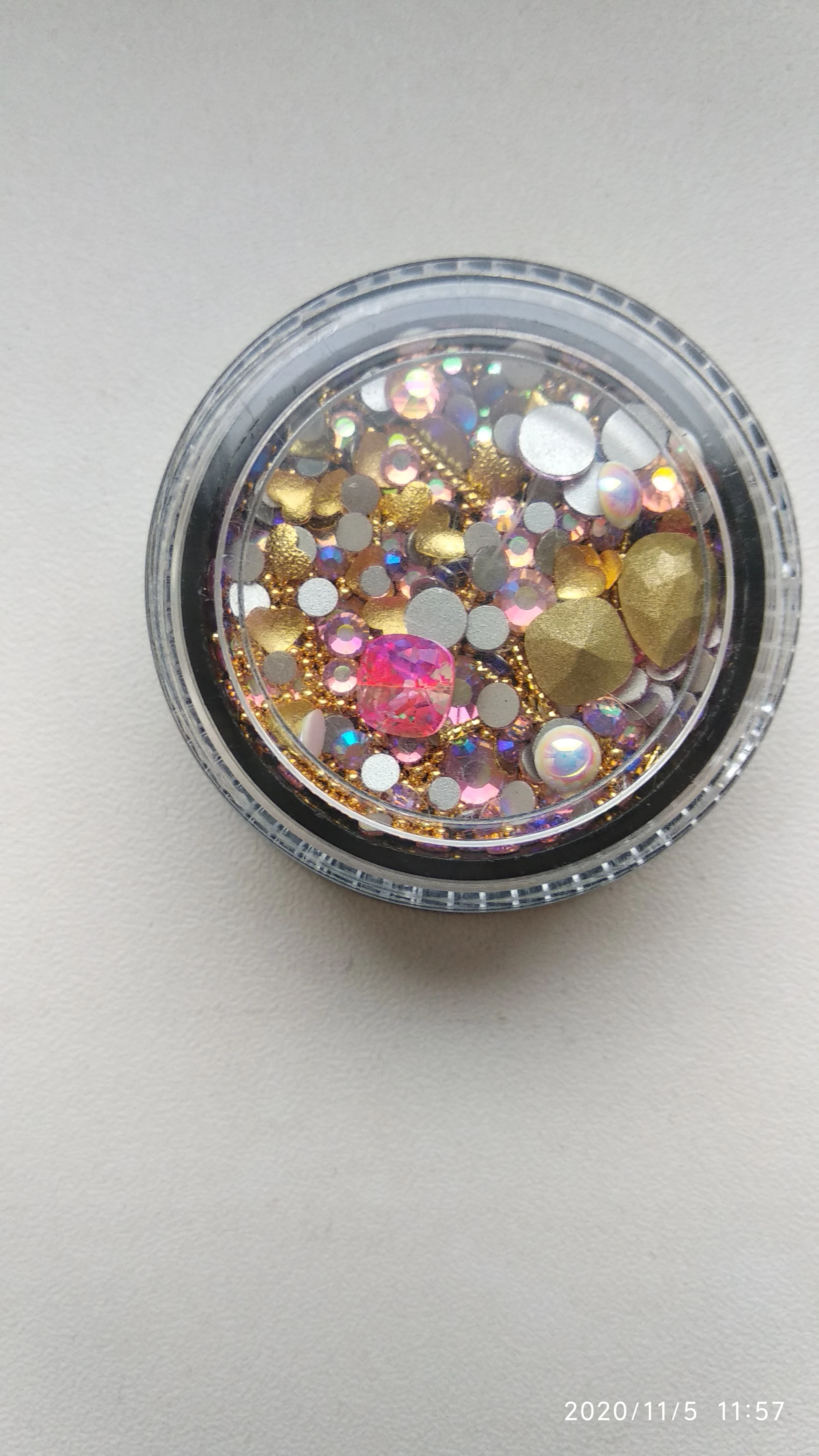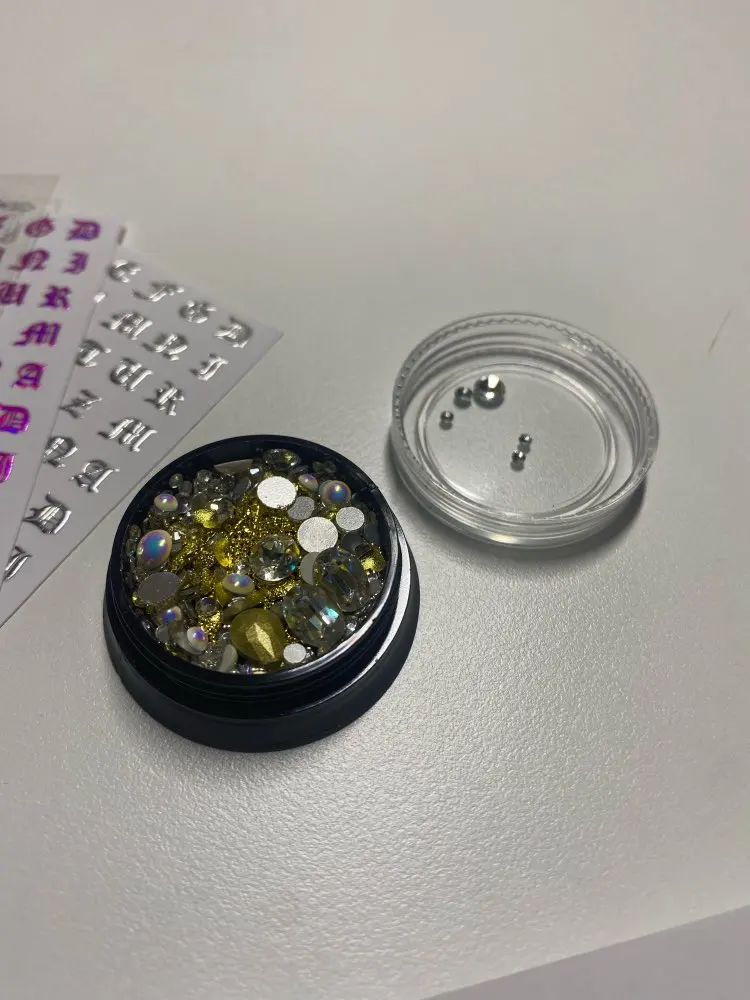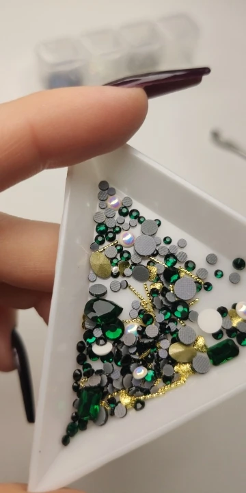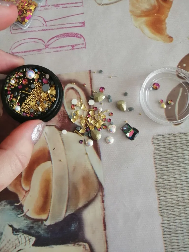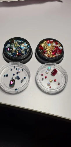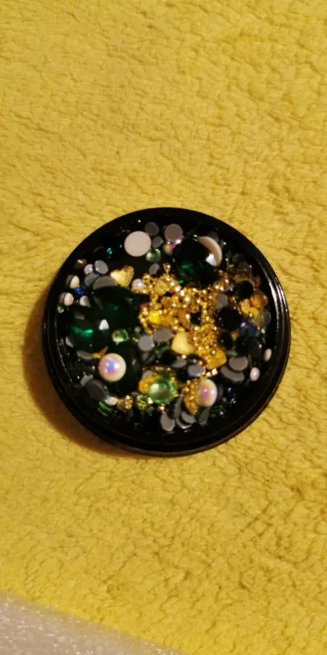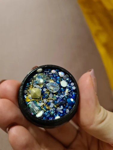 Такой классный набор чик, че в нем только нет. Есть и крупные стразы и мелкие и бульонки и разные мелкие детальки. Такие наборчики выгодней покупать. Обязательно найдётся, что наклеить на ноготочки. Покупайте не пожалеете.