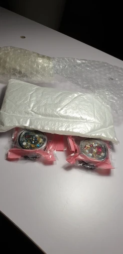 Товар получила вовремя...все как на фото...не знаю сколько будут держаться камушки побольше...но красиво..на свету сверкает...продавцом и товаром довольна...