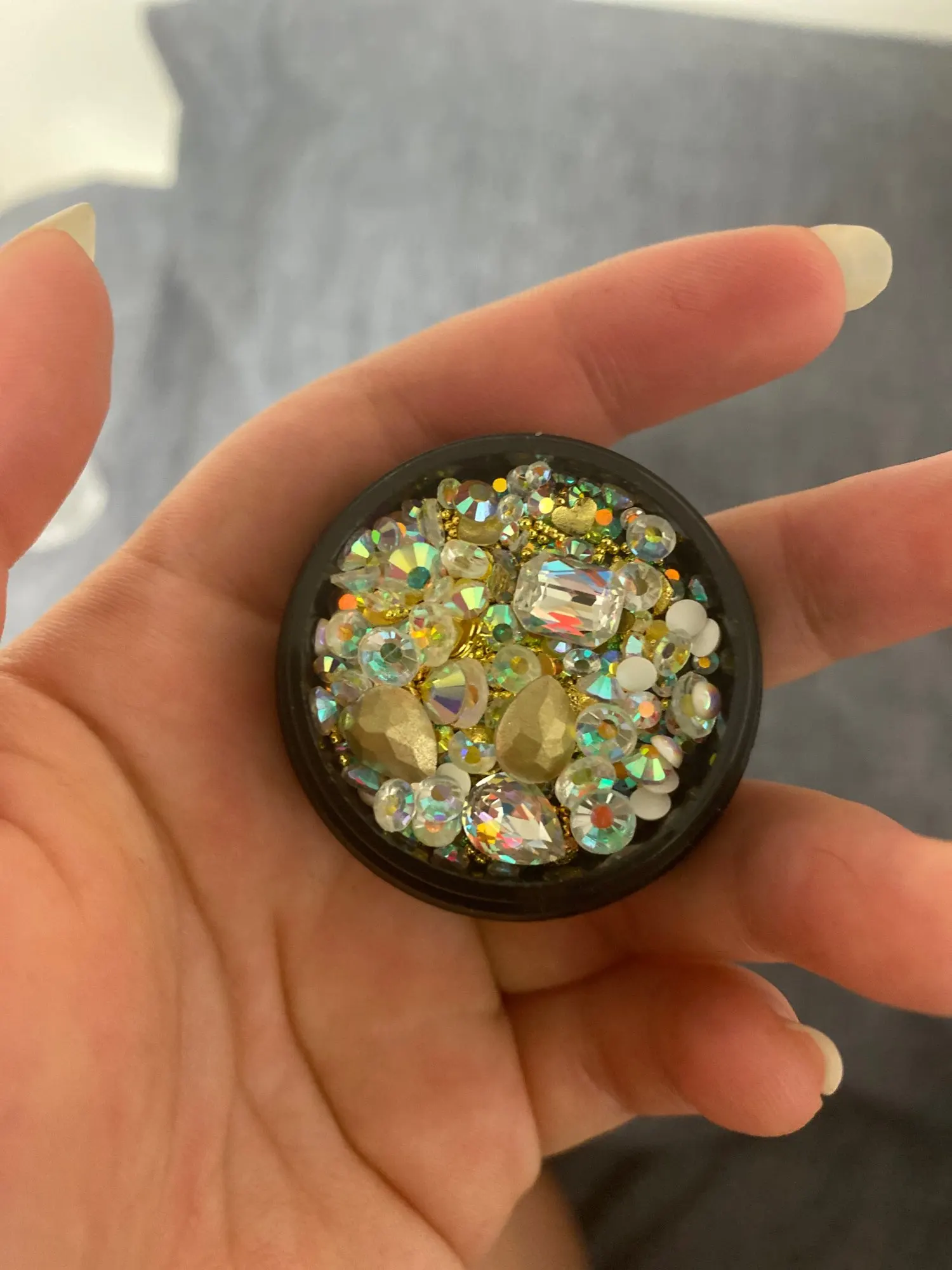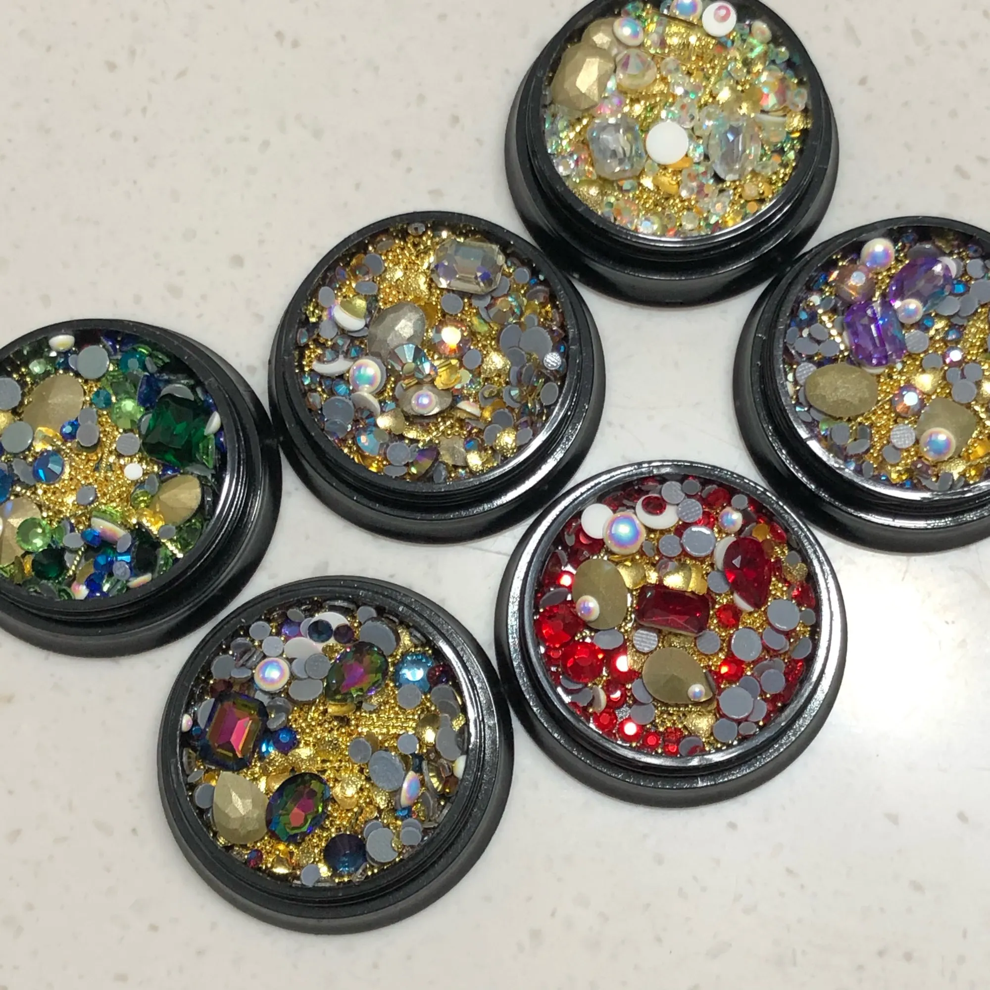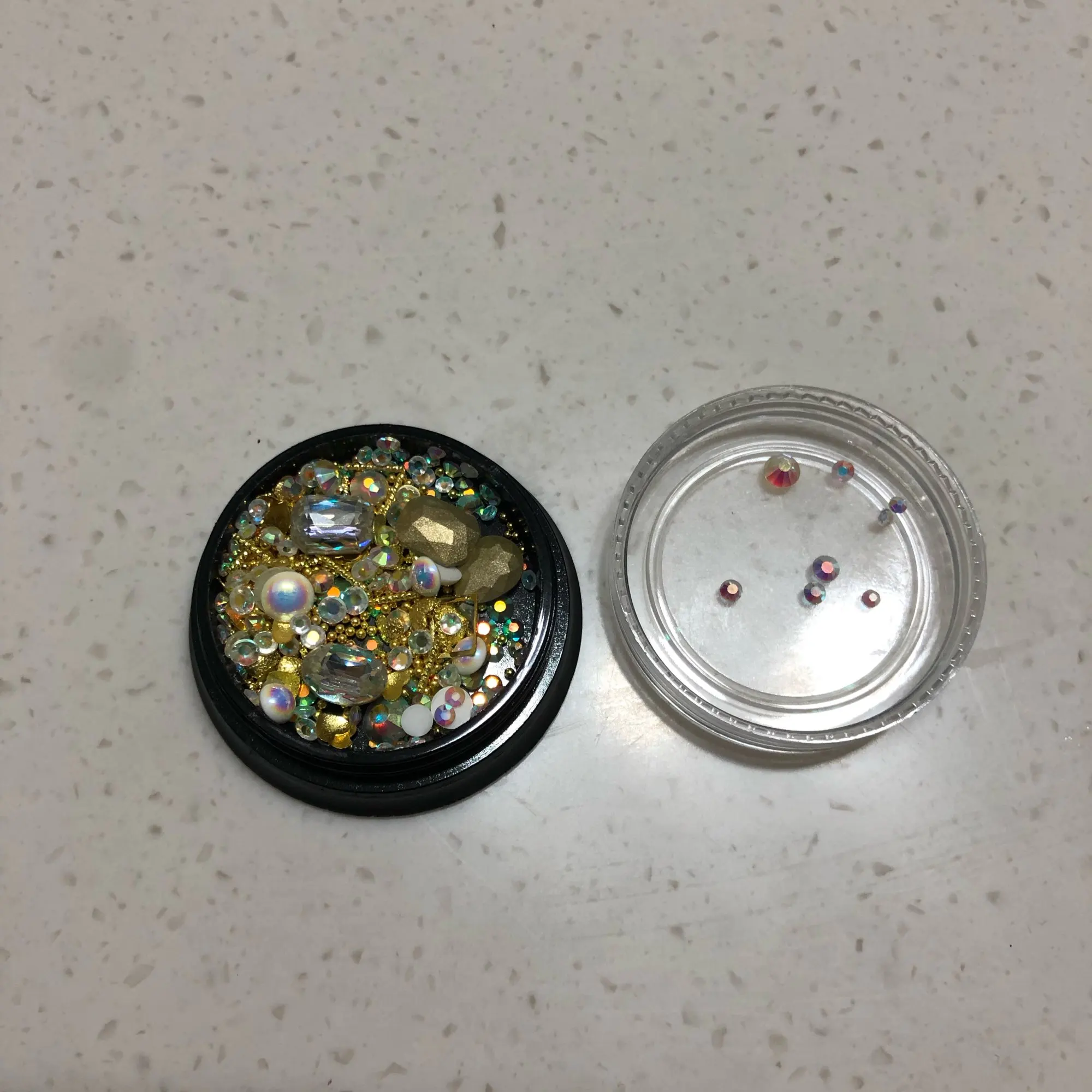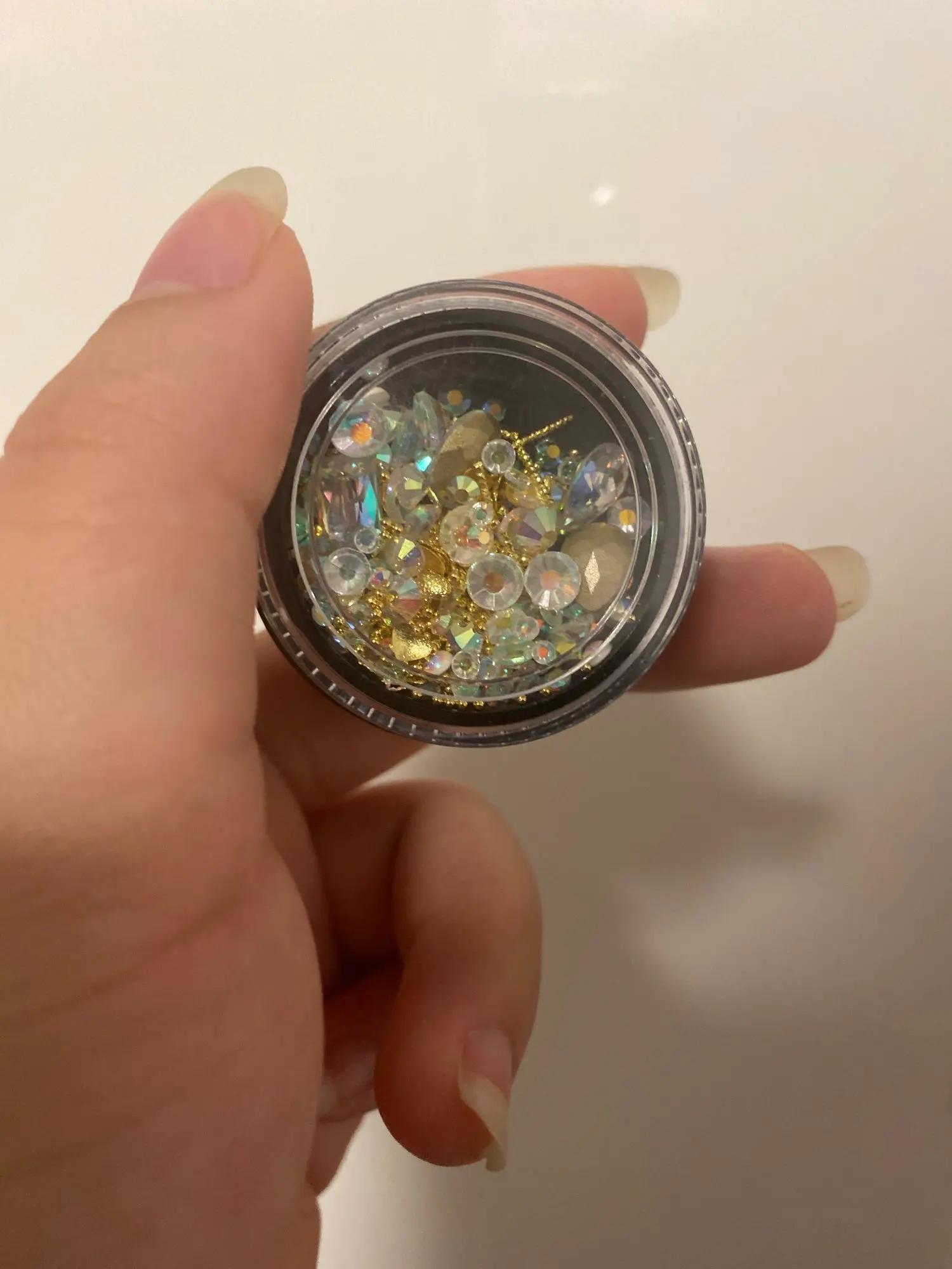 Люблю эти драгоценные камни для моего пресса на ногтях! Обесцвечиватель на больших драгоценных камней tho, они немного остроконечны на задней части, которая должна касаться ногтя, поэтому его трудно приклеивать, не скользя везде, я рекомендую держать на месте во время отверждения. Я только что использовал маленькие драгоценные камни и жемчуг, которые мне понравились. Буду покупать другие цвета