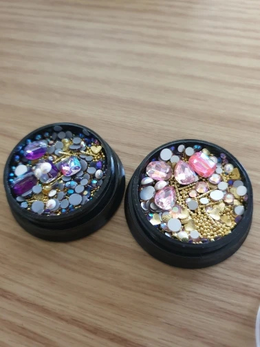 Они очень милые и делают отличные ногти на День святого Валентина. Я получил именно то, что на фото. Украшения для ногтей поставляются в Маленькая ванна с винтовой крышкой, которая будет полезна даже после использования побрякушки.