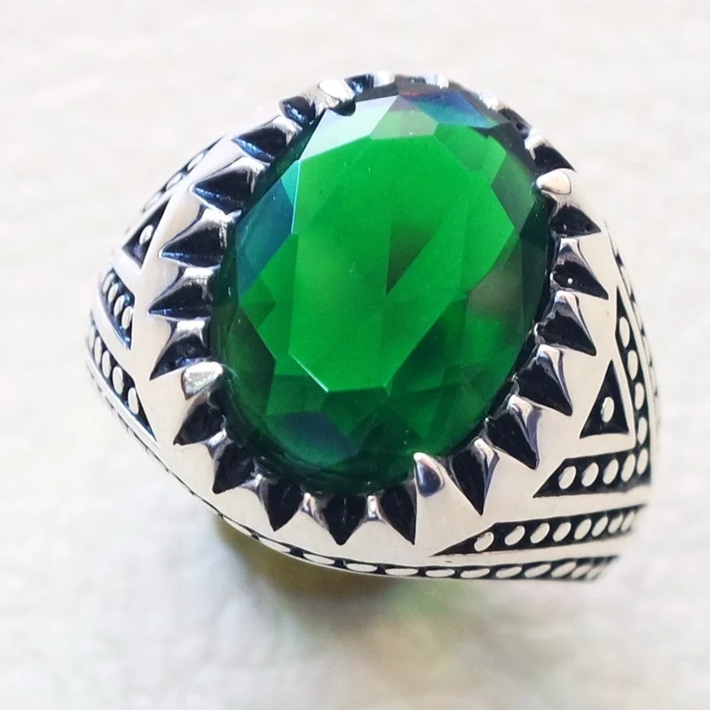 OMHXZJ оптовая продажа, европейский модный мужской вечерний подарок на свадьбу, серебряное, черное, зеленое овальное кольцо AAA Zircon Taiyin RR326