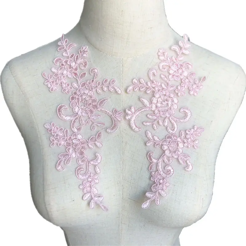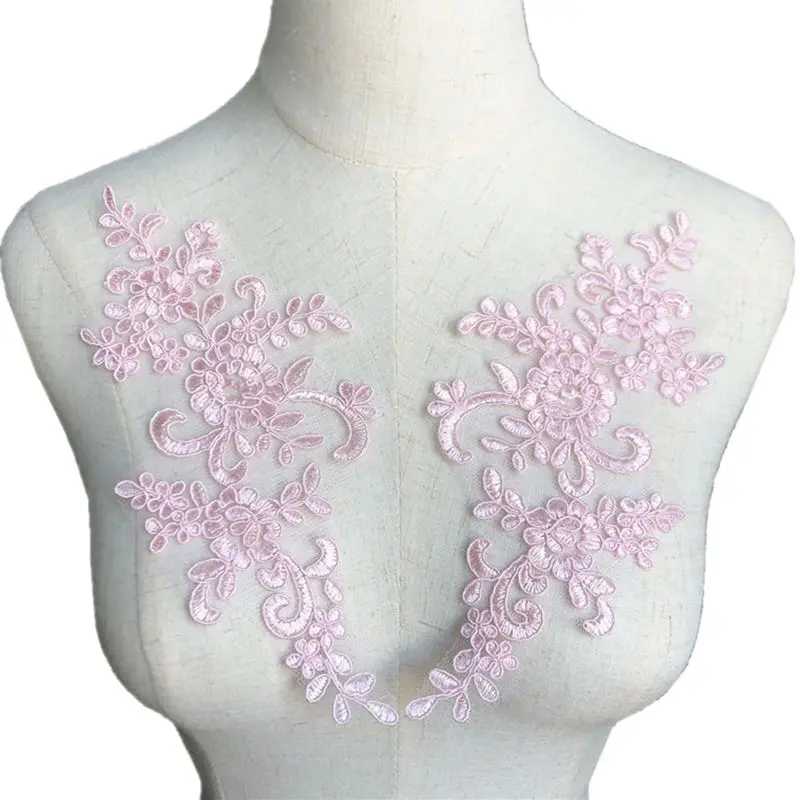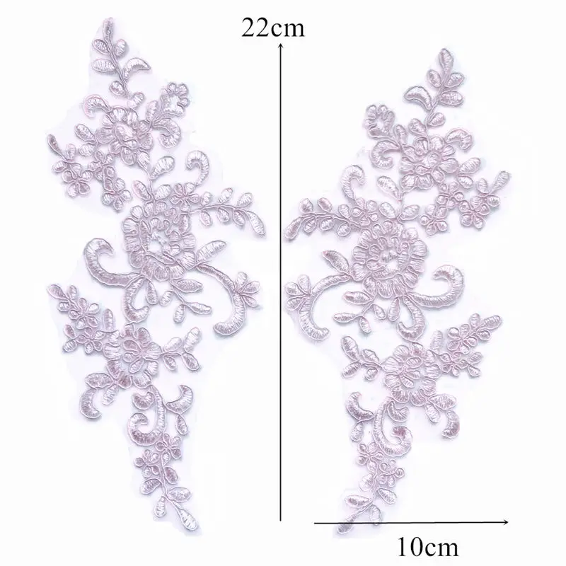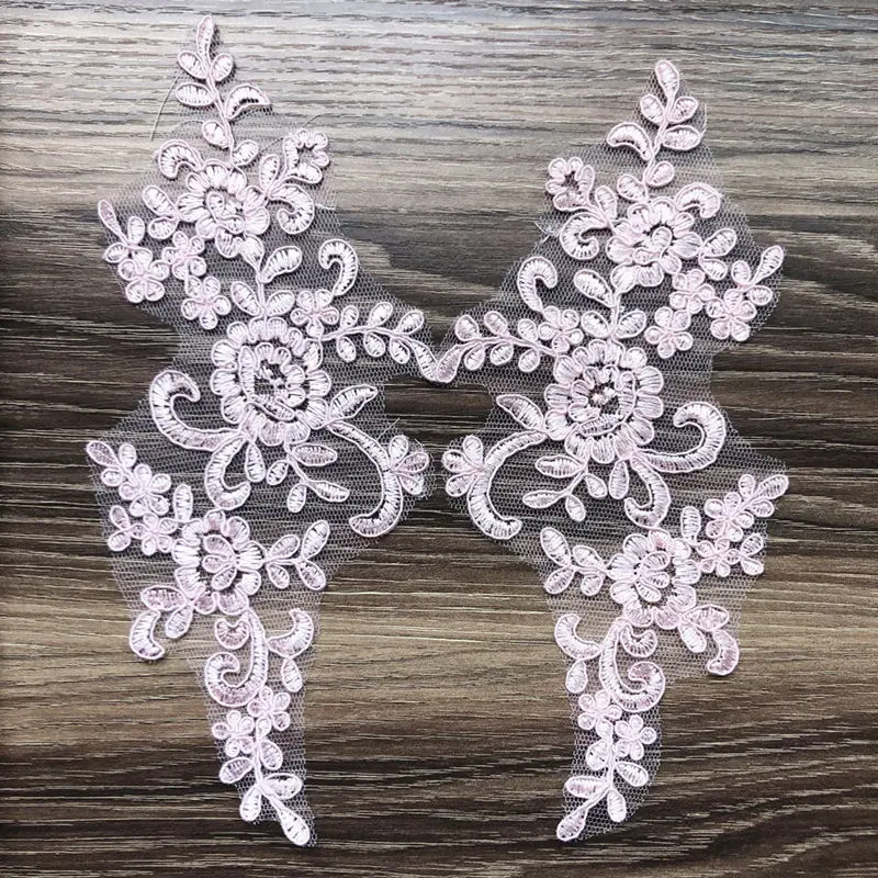 2 шт., Вышитые розовые кружевные аппликации для свадебного платья